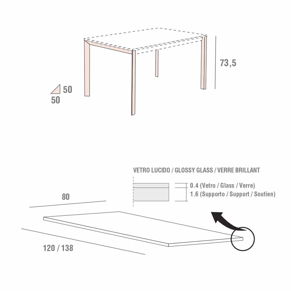 - B 138 x D 80 x H 75,5 cm;