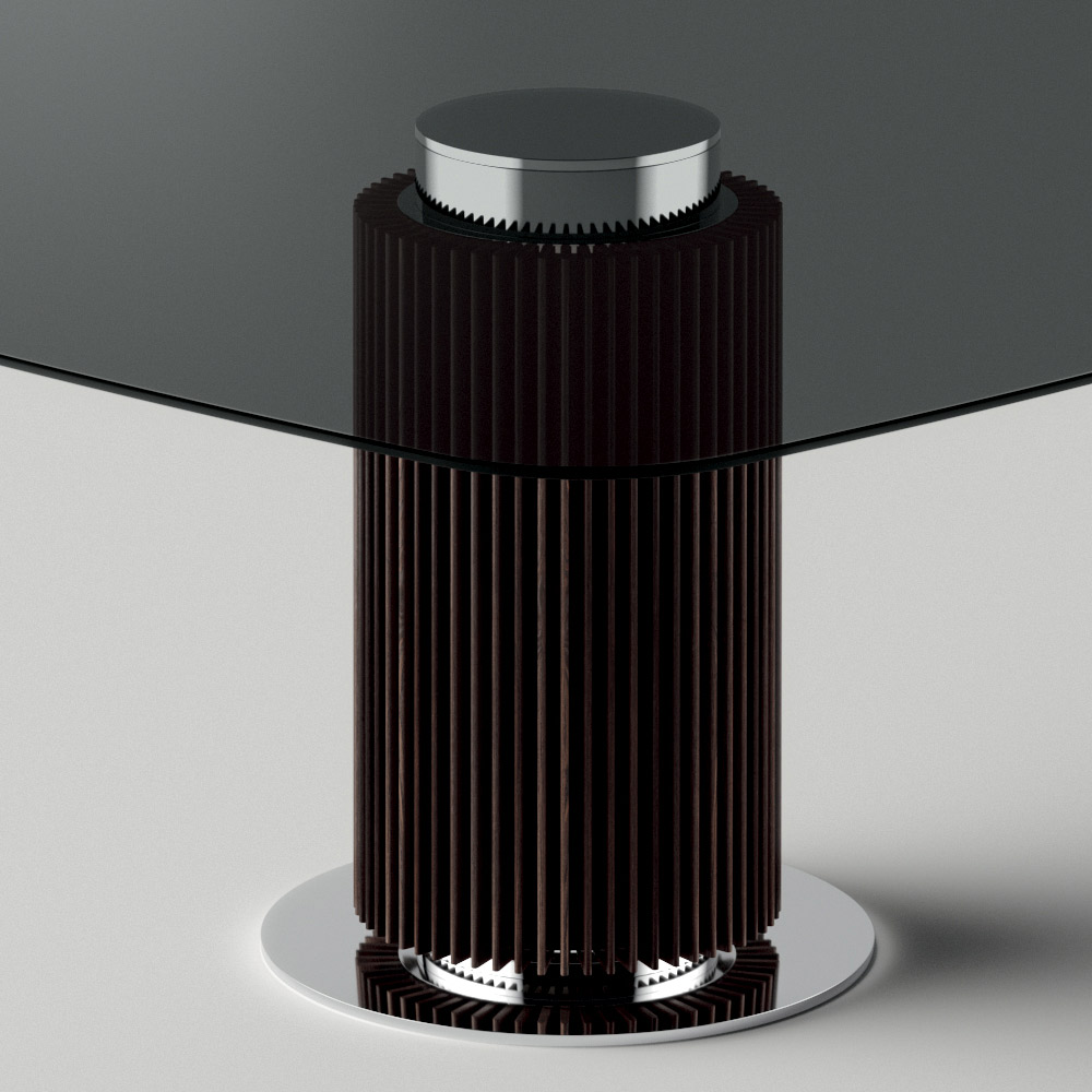 elegant och skulpturell struktur , kommer denna möbel från kombinationen av material av olika karaktär tillsammans med
