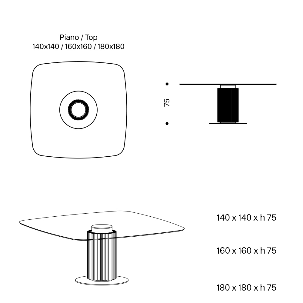 - B 160 x D 160 x H 75 cm;