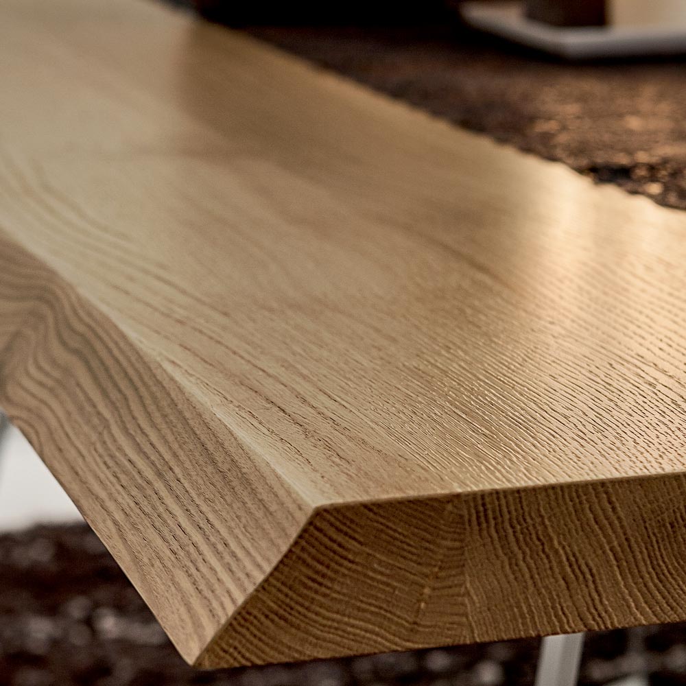 moderna personlighet och berikar dess estetik på ett exklusivt sätt. Dessutom ger den ovanliga avbarkade kanten på toppen en rustik touch till slutresultatet, vilket skapar en underbar