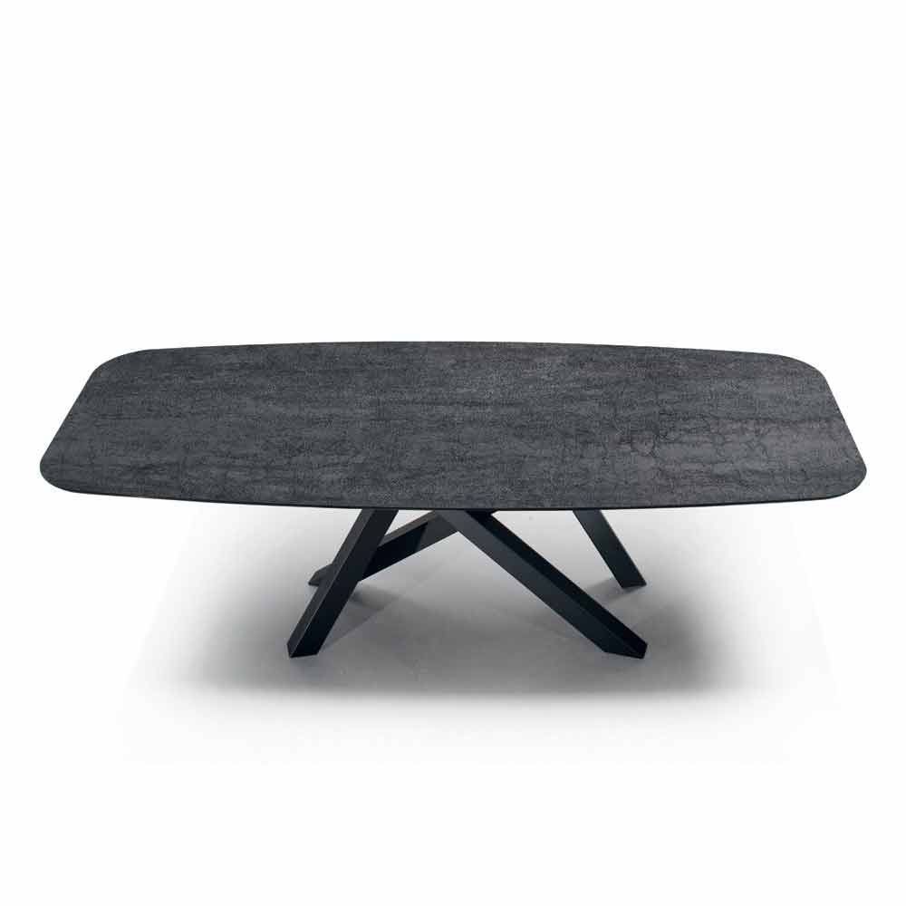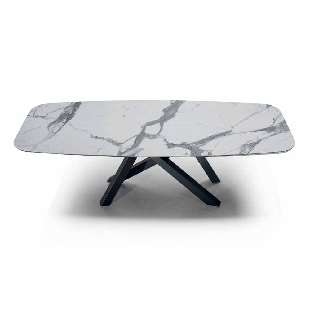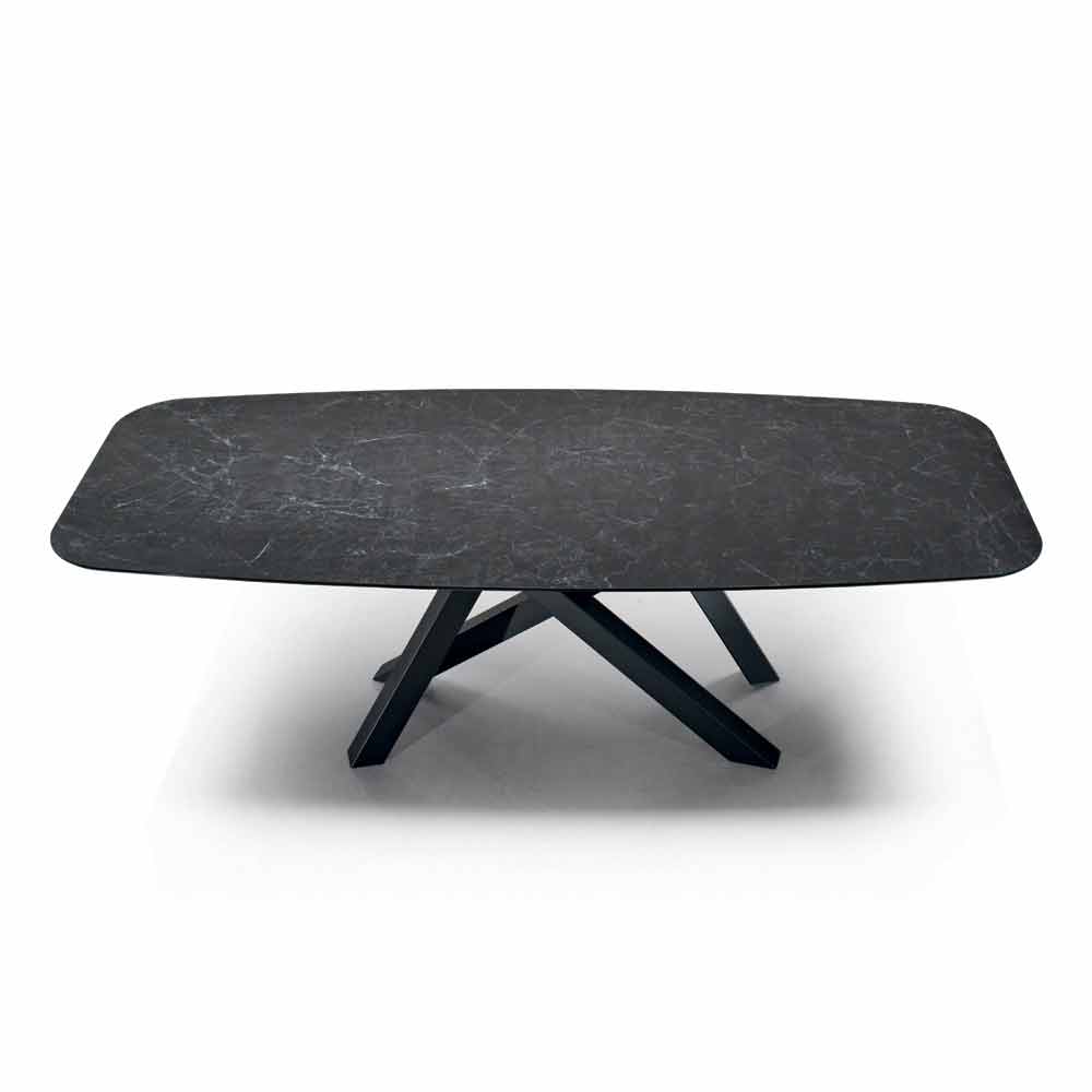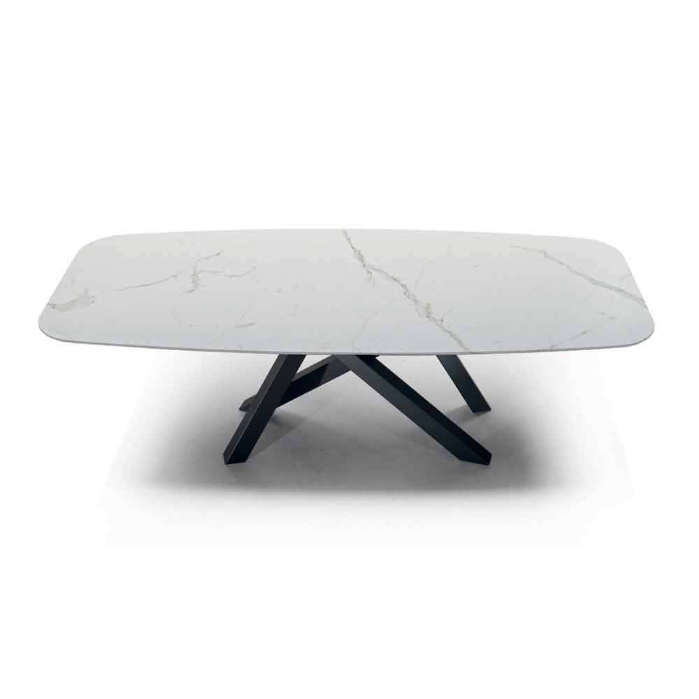 Matbord med fatformad skiva i keramik tillverkat i Italien, lyx.
