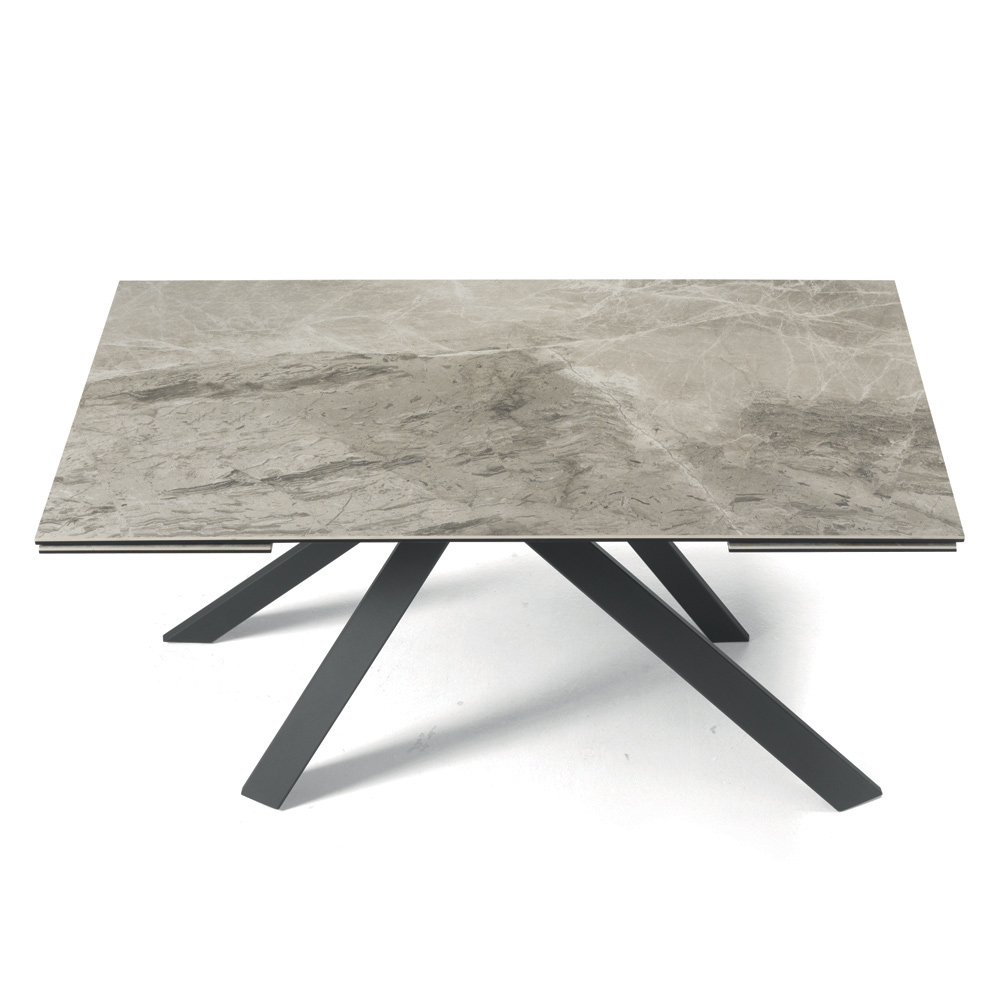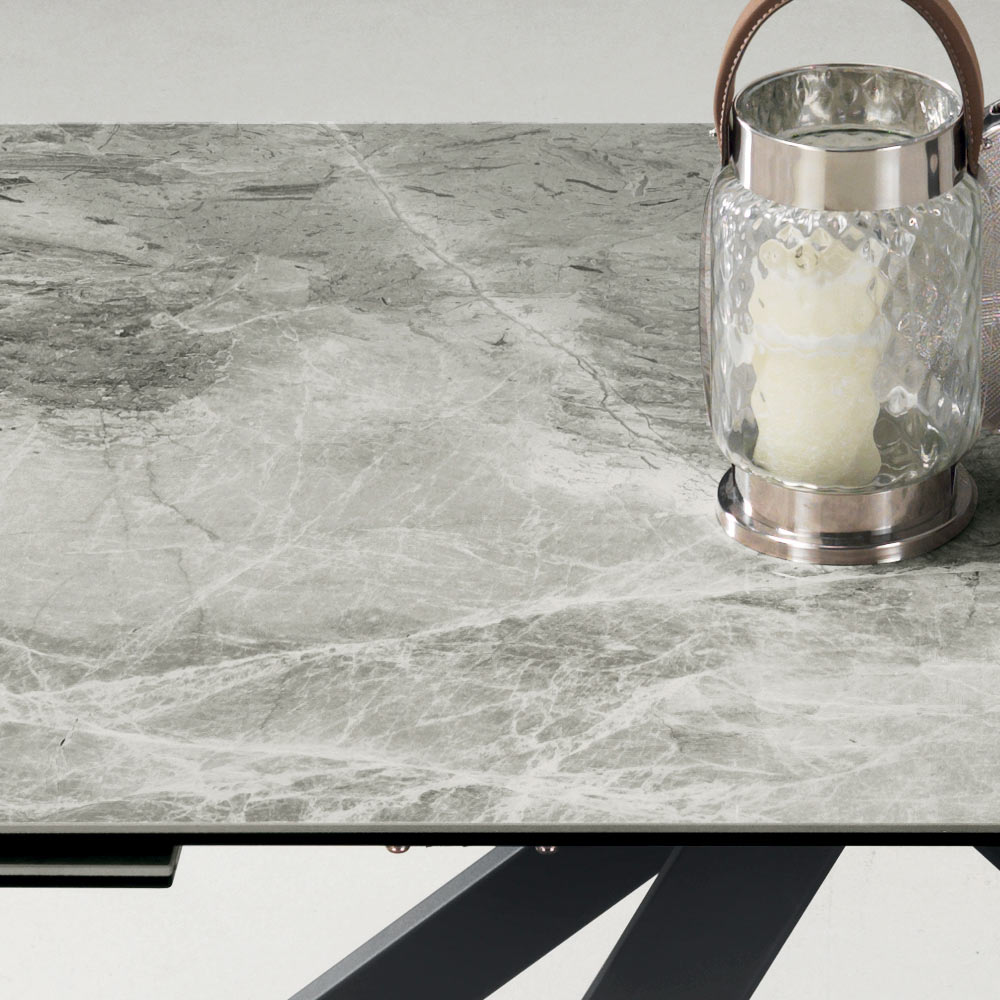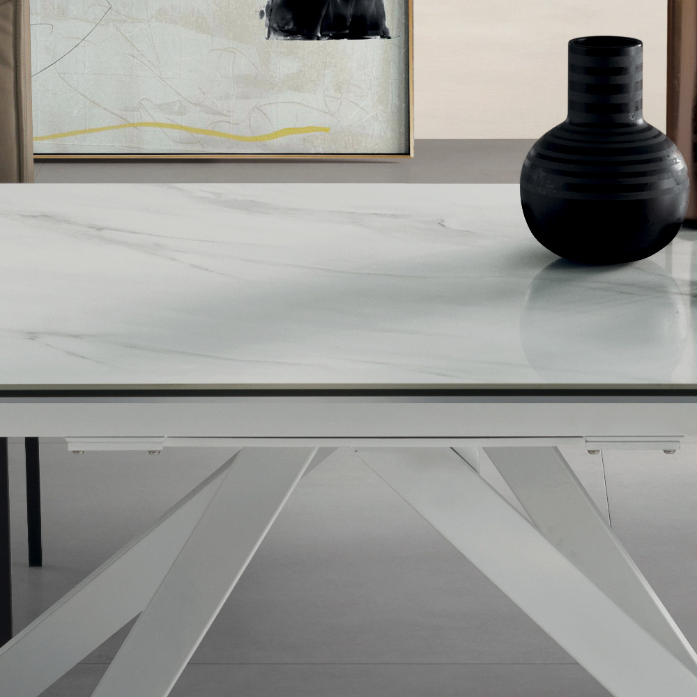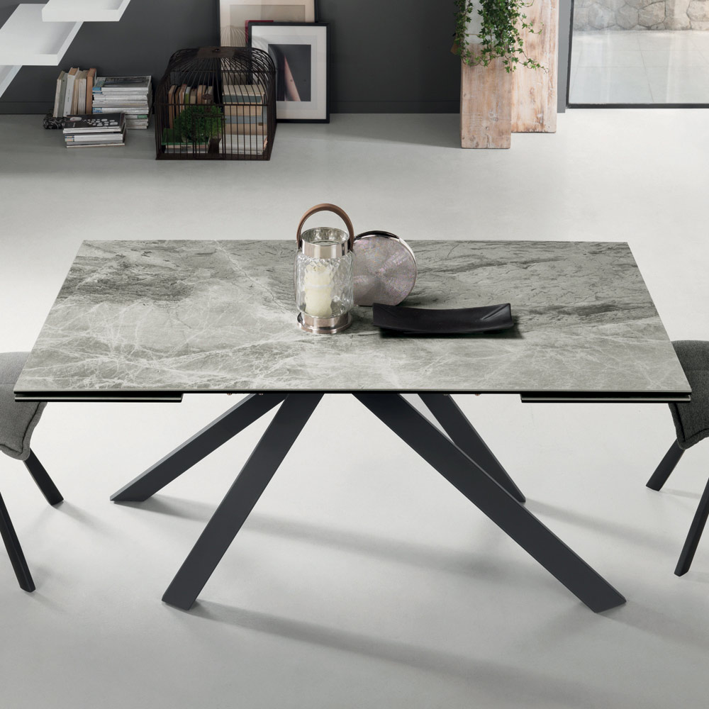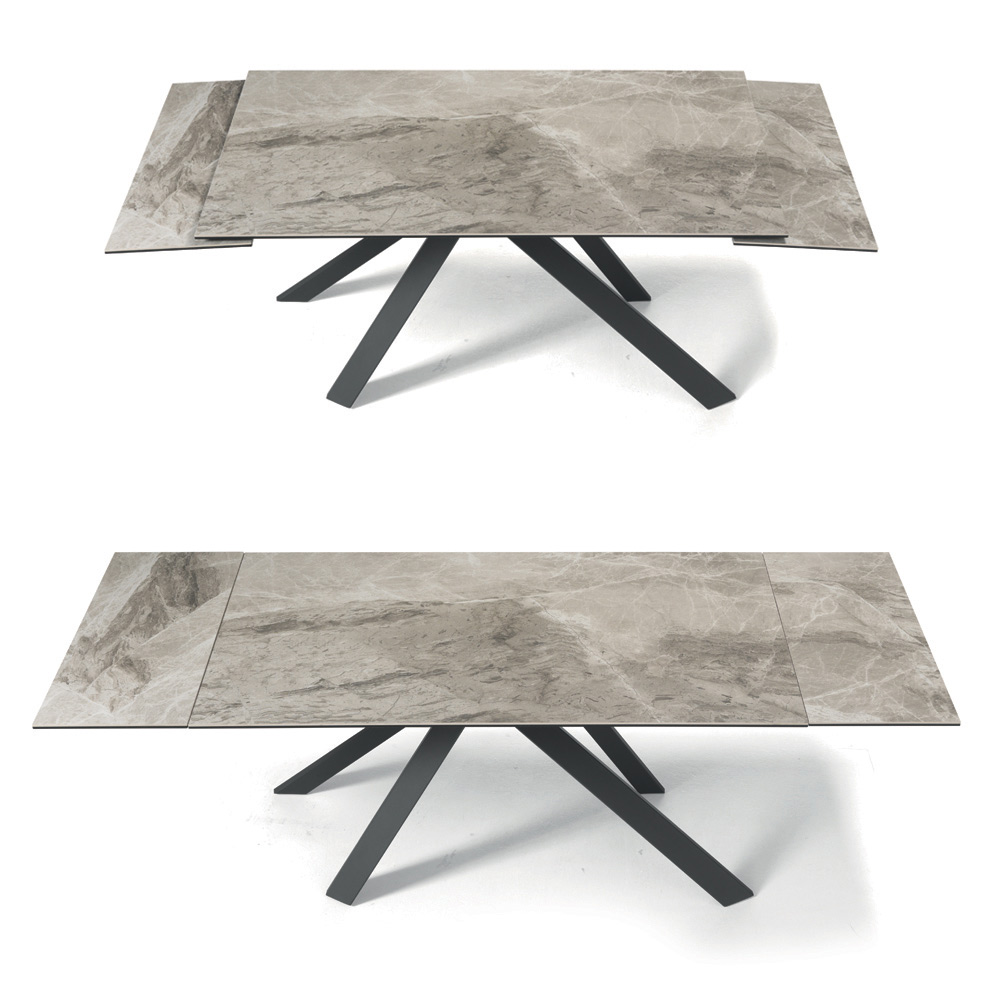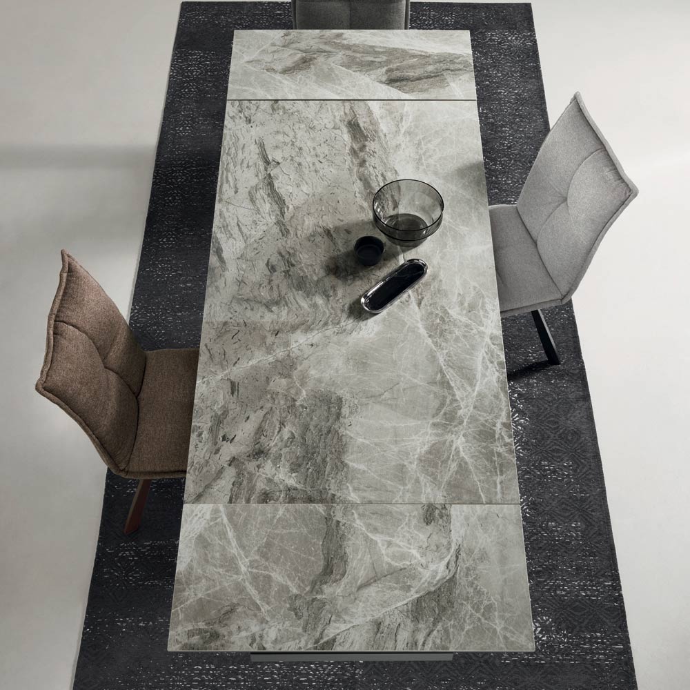 Matbord med skiva tillverkad av marmor-effekt porslin stengods utdragbart upp till 240 cm tack vare de två medföljande 40 cm förlängningsskivor och målad metallstruktur . Denna produkt är perfekt för dem som älskar att organisera luncher och middagar med vänner utan att offra stil och elegans.