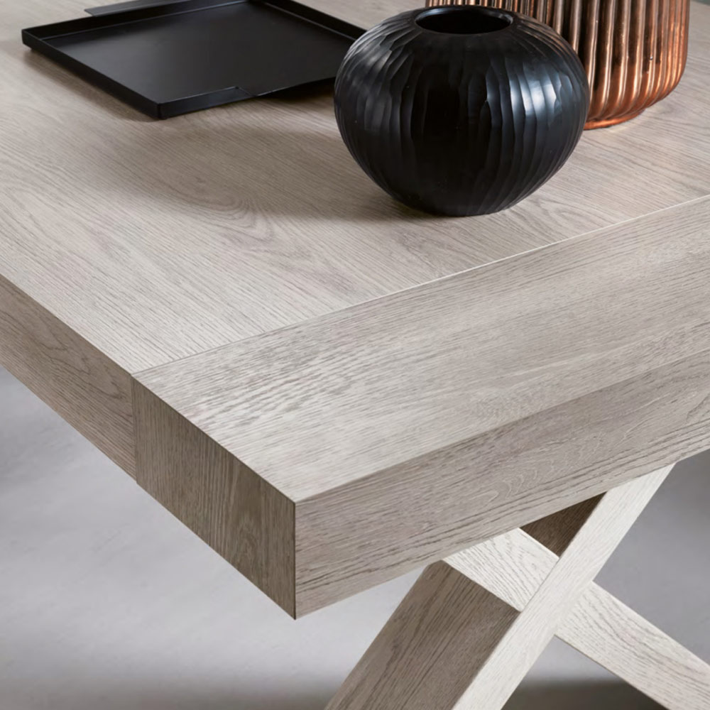 imponerande stil som kan erövra huvudrollen i rummet även tack vare dess stora storlek. Dess estetik berikas och görs unik genom den speciella korsade formen på basen som erbjuder