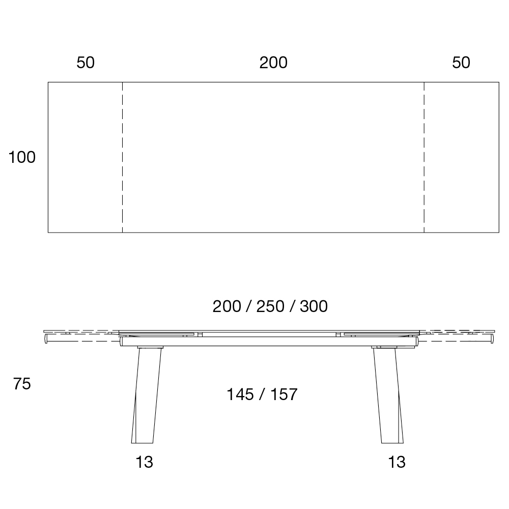 - L 200-250-300 x P 100 x H 75 cm