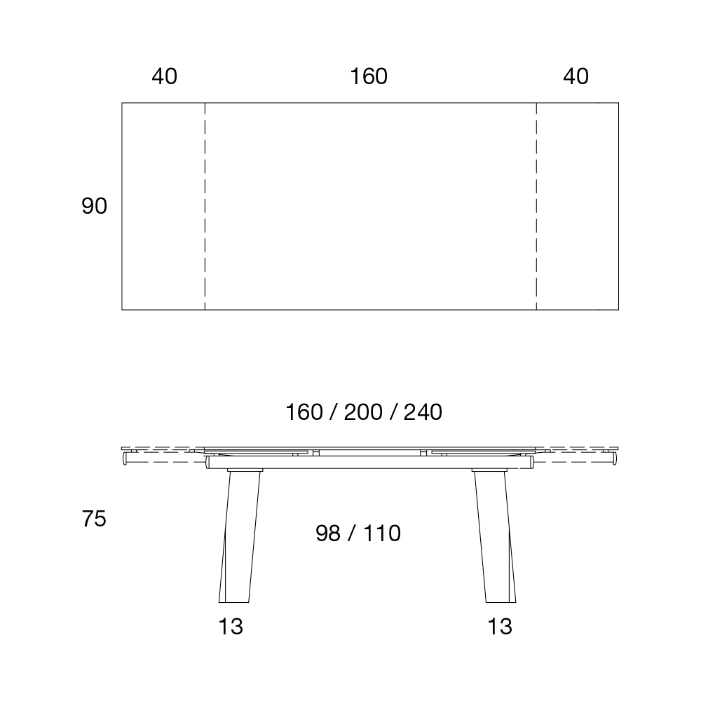 - L 160-200-240 x P 90 x H 75 cm