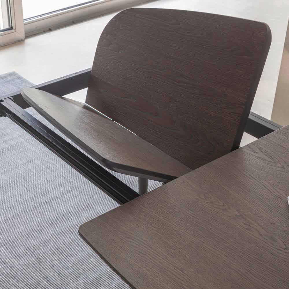 Utdragbart och format matbord i fanerat trä tillverkat i Italien.