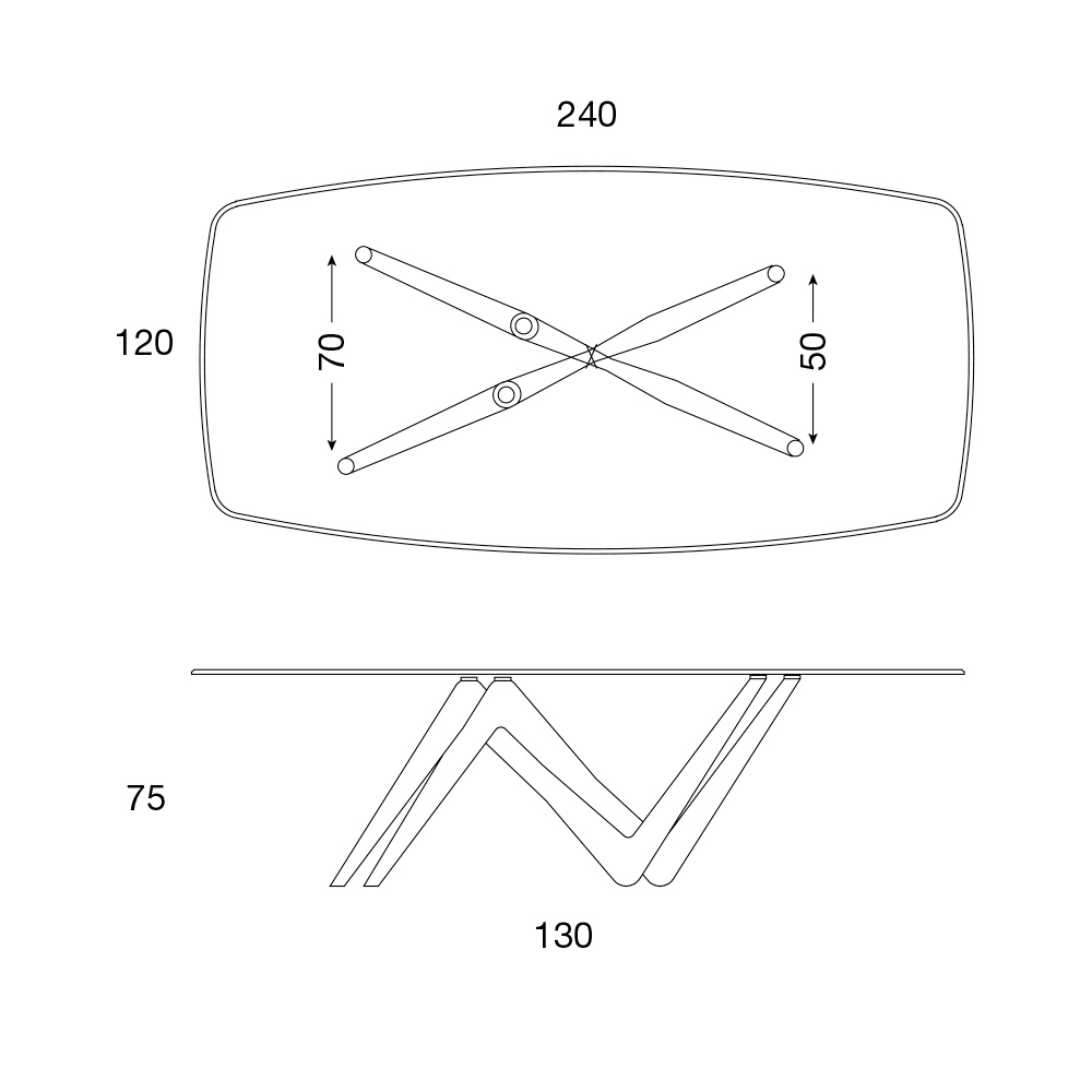 - L 240 x P 120 x H 75 cm