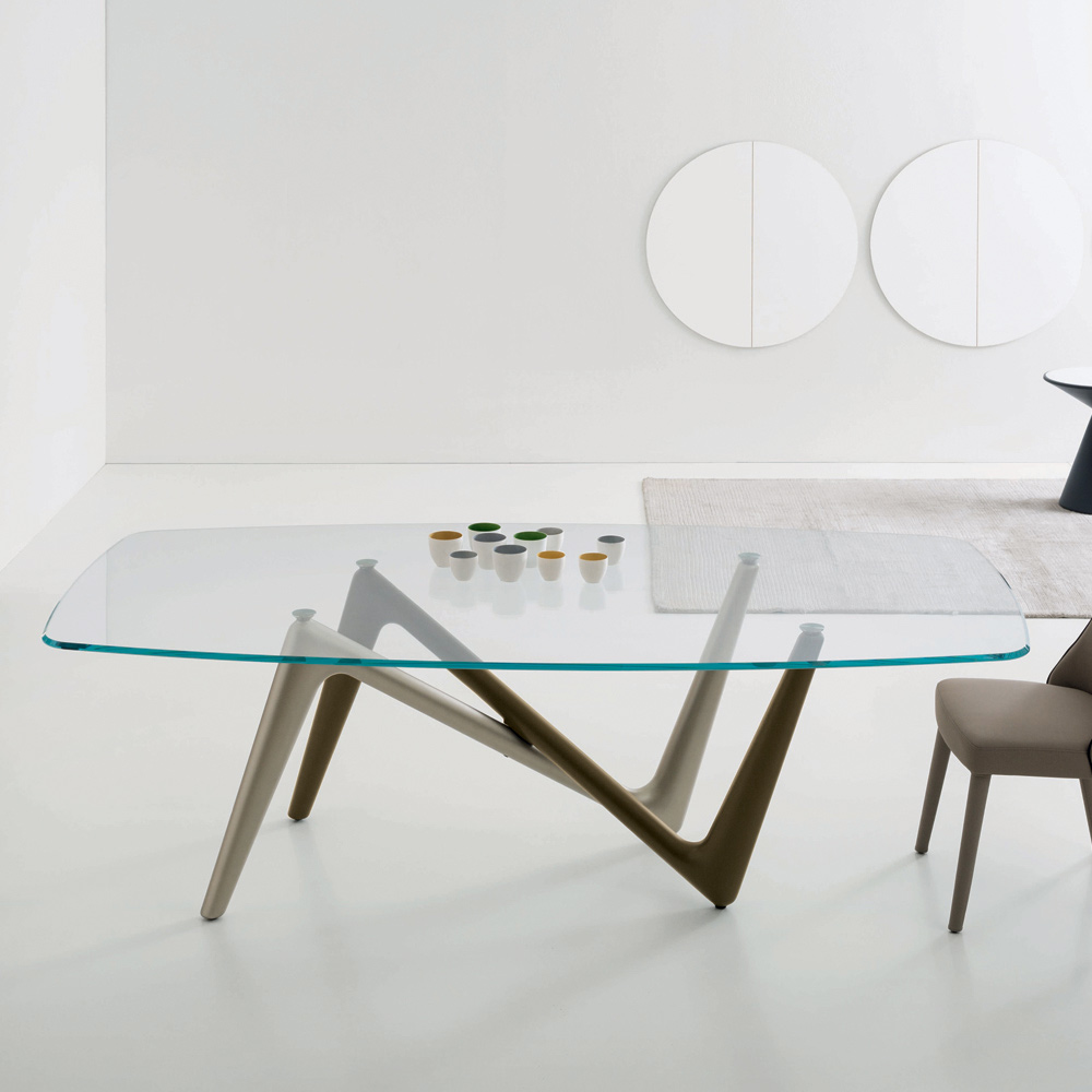Matbord i transparent glas och polyuretanfot, 2 storlekar tillverkat i Italien.