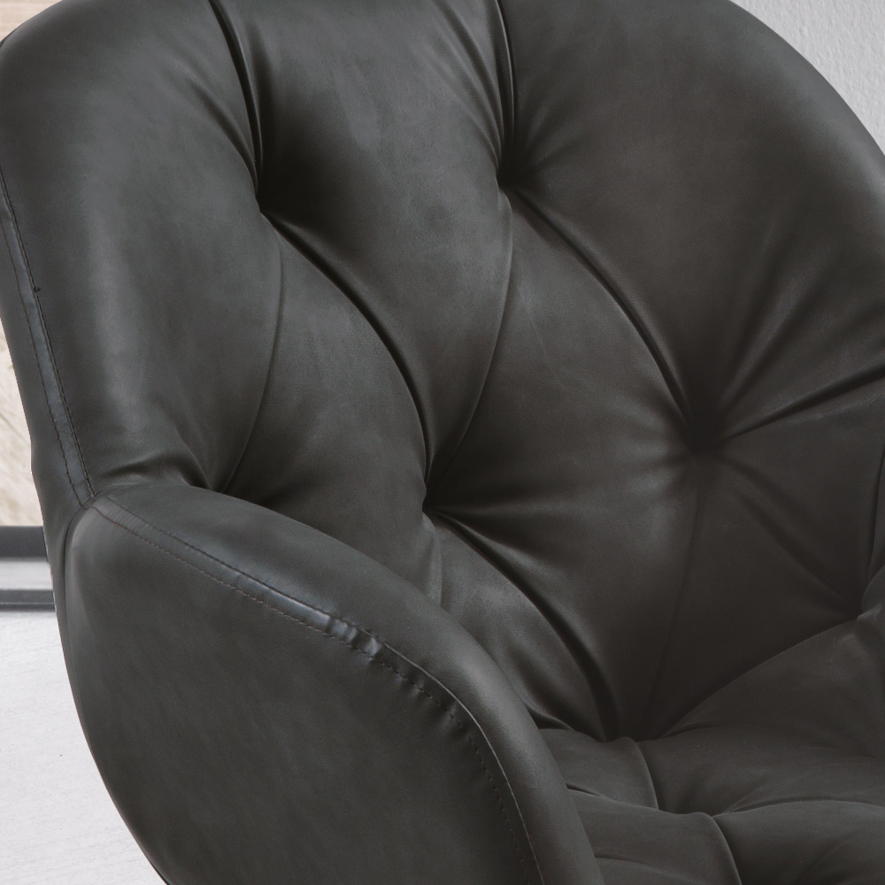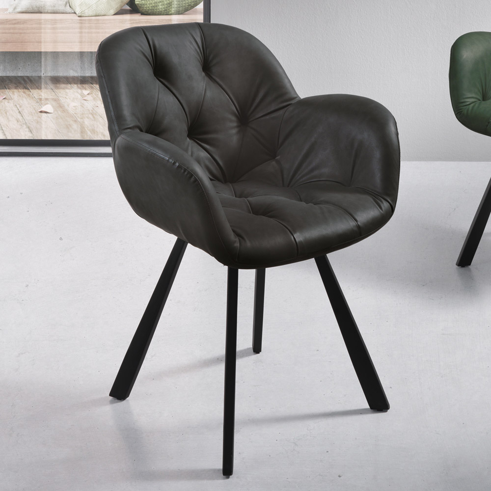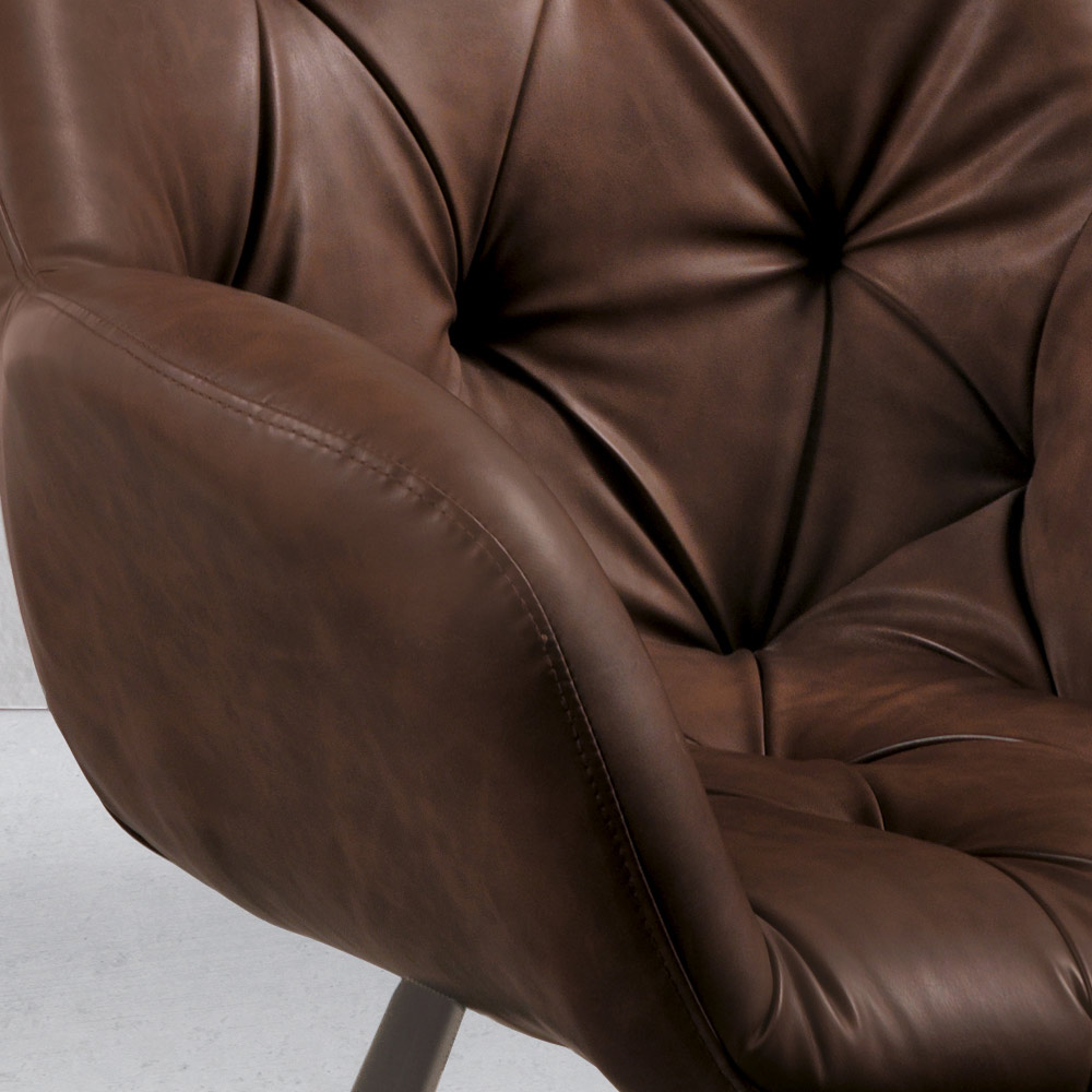 Vardagsrumsstol med målad metallstruktur och sits i ekoläder.