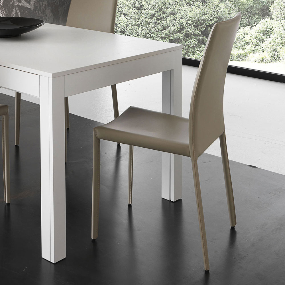 Matsalsstol med struktur gjord av metall täckt med pvc konstläder i samma färg och finns i sex olika utföranden. En möbel som kännetecknas av en väsentlig och elegant estetik , perfekt för att inreda ditt vardagsrum på ett exklusivt och smakfullt sätt. De underbara färgerna som föreslås bidrar till att göra stolen mångsidig , kapabel att skapa perfekt harmoni med de omgivande inredningselementen.