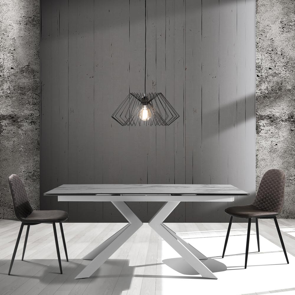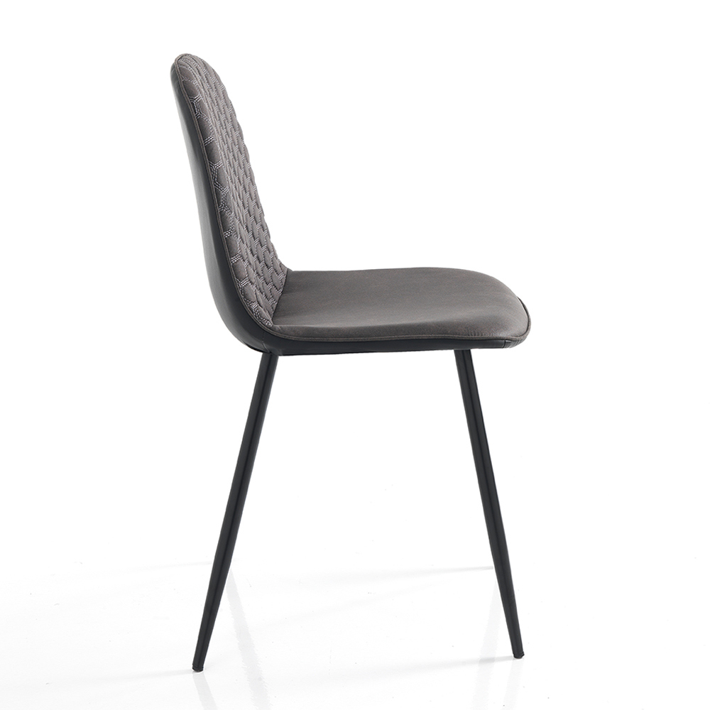 Matsalsstol klädd i åldrad sammetseffekt mikrofibertyg med ryggstöd i svart syntetiskt läder och mattsvartmålad metallstruktur. För att berika stolens enkla estetik är det