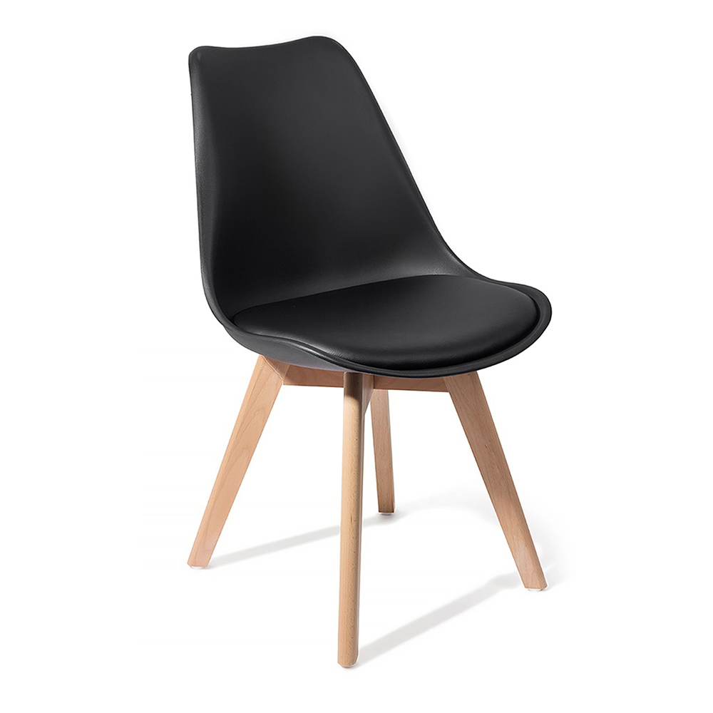 Matsalsstol i konstläder, polypropen och massivt trä, 4 st.