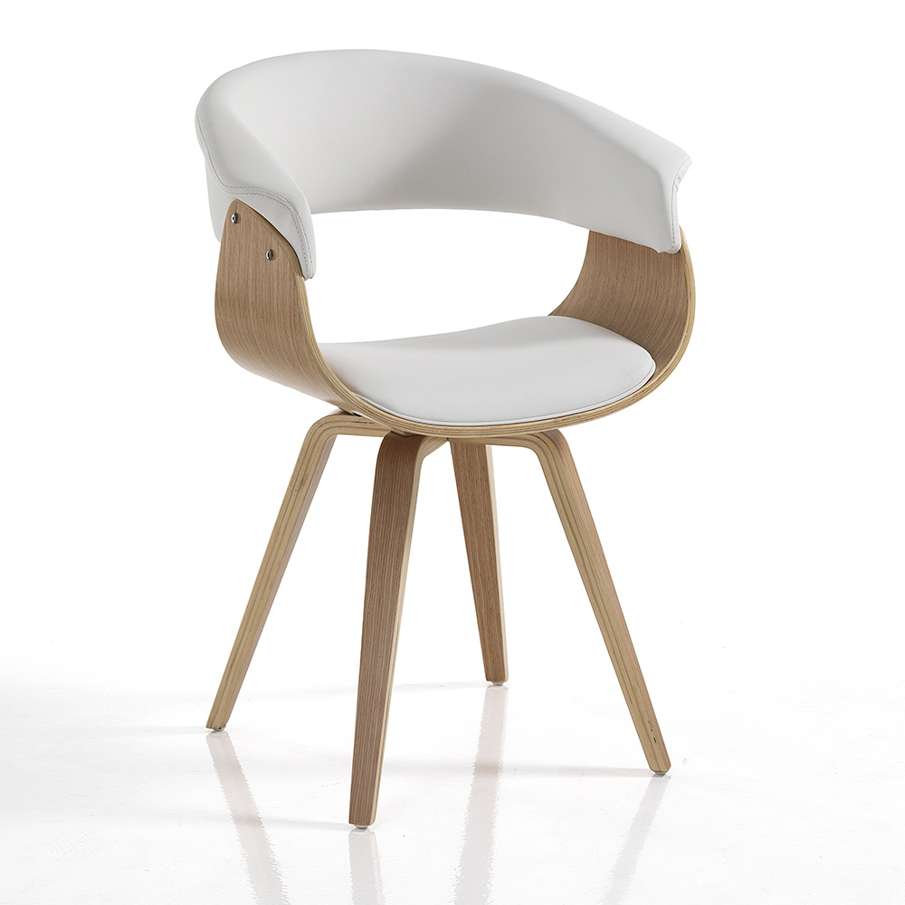 Matsalsstol med struktur av plywood och insatser i syntetiskt läder . En unik och fängslande stil kännetecknar denna sits vars estetik präglas av mjuka former och rundade linjer som säkerställer en bekväm och omslutande produkt, därför idealisk för att på ett funktionellt sätt komplettera matsalar eller kök med modern inredning. Den underbara kombinationen av den imponerande touchen av trä och lädrets tidlösa elegans ger liv åt en originell , avantgardistisk stol med en stark samtida personlighet .