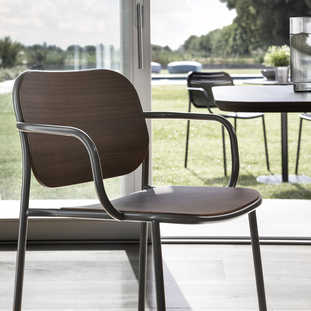 Köksstol i trä och metall med armstöd Tillverkad i Italien, 2 st.