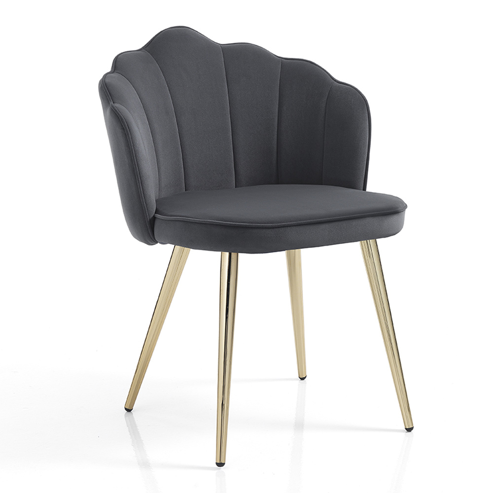 Matsalsstol i sammetseffekt och blank guldmetall, 4 st.