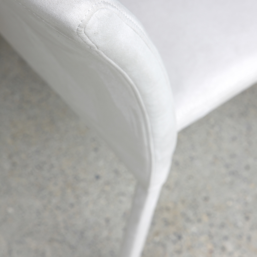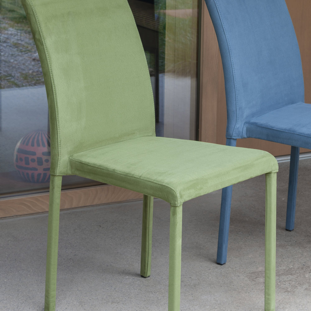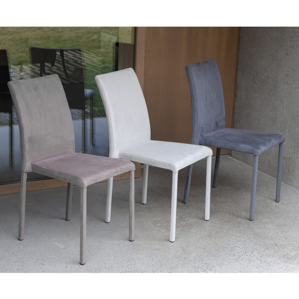Stapelbar matstol som består av en metallram klädd i vattenavvisande färgad econabuk . Denna matstol är resultatet av enkla och kvalitetsmaterial som hjälper till att skapa en perfekt produkt för alla miljöer. Den här stolen kännetecknas av en slank och elegant design och har enkla och slingrande linjer kombinerat med en delikat stil .
