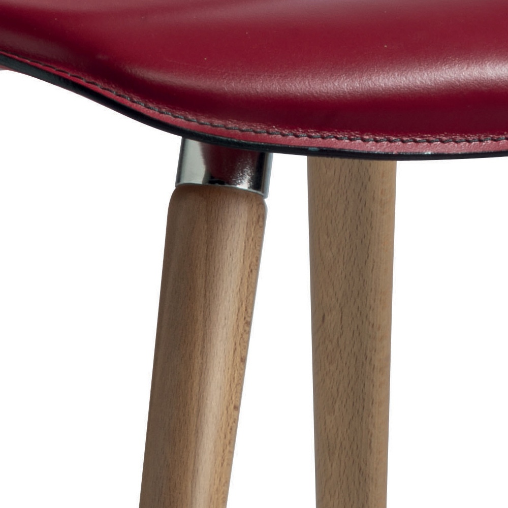 Inomhusstol med monocoque naturlig bokstruktur , sits och ryggstöd i mörkbrunt regenererat läder helt tillverkat i Italien .