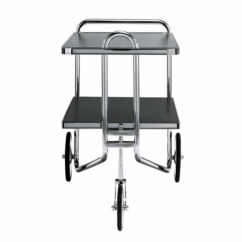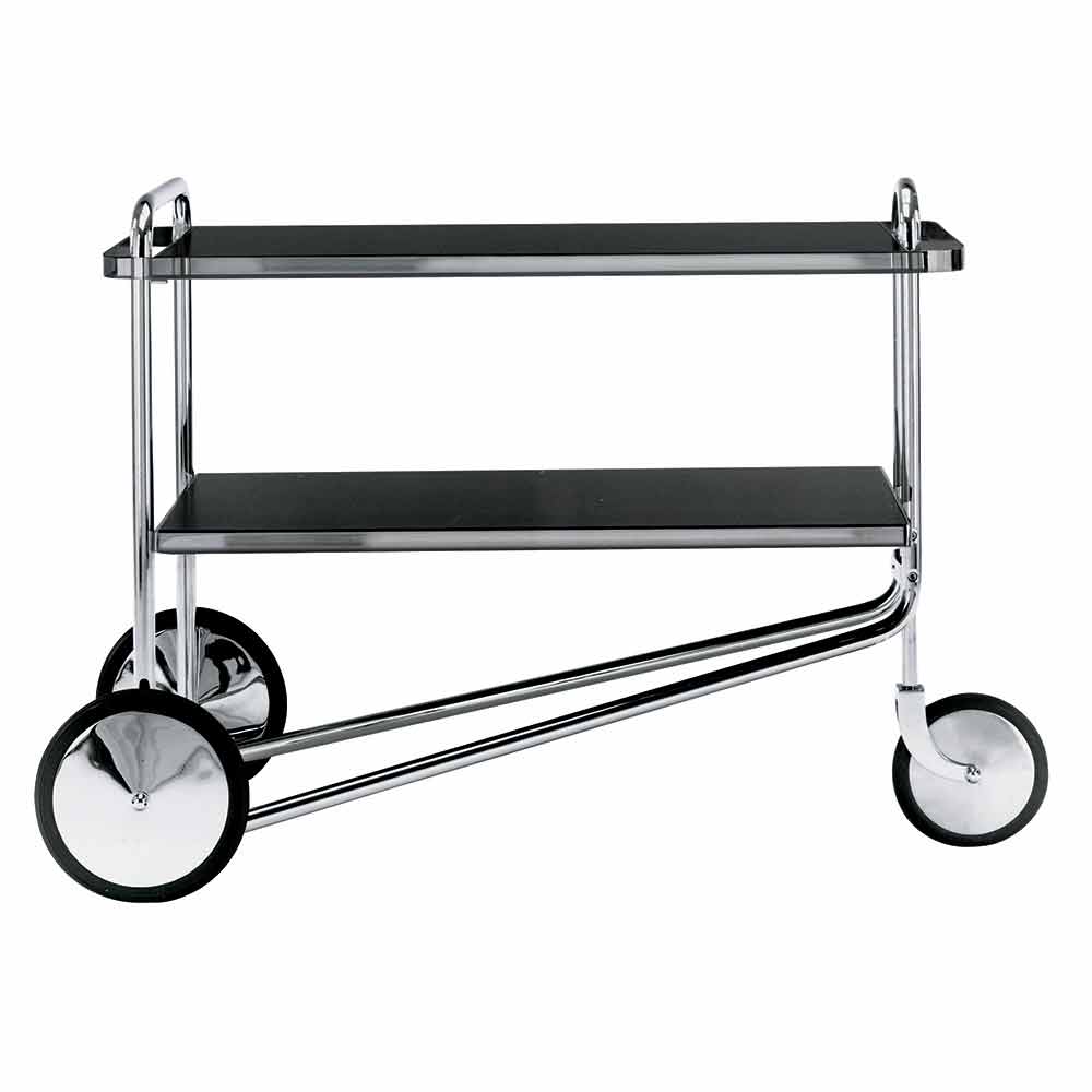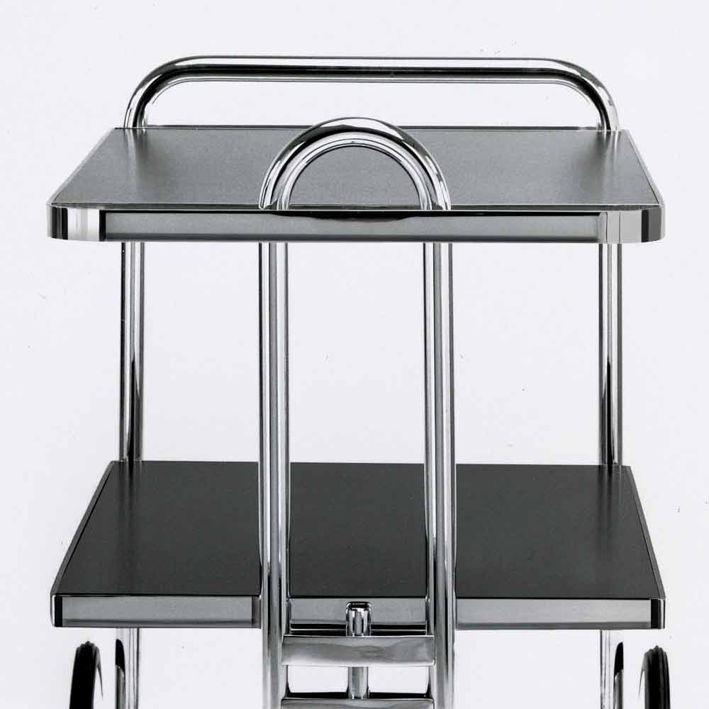 Matvagn i förkromat stål med svarta laminathyllor Tillverkad i Italien.