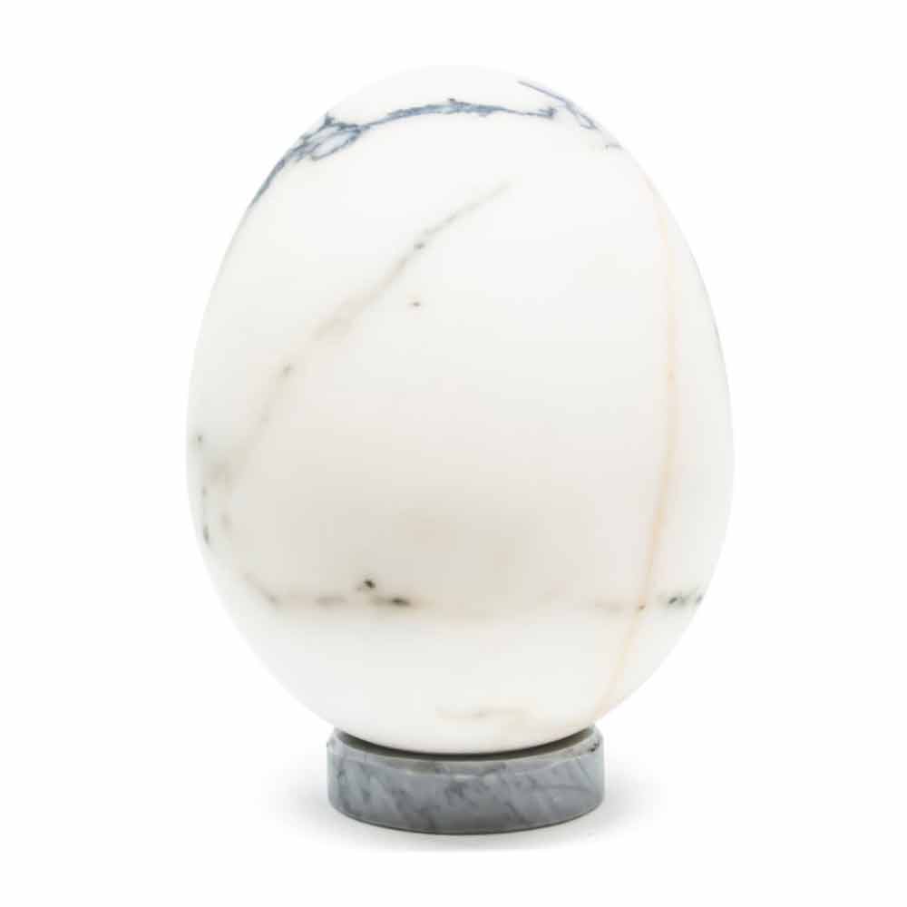 Ägg i Paonazzo marmor av medelstorlek, designobjekt av lyx och kvalitet tillverkat i Italien.