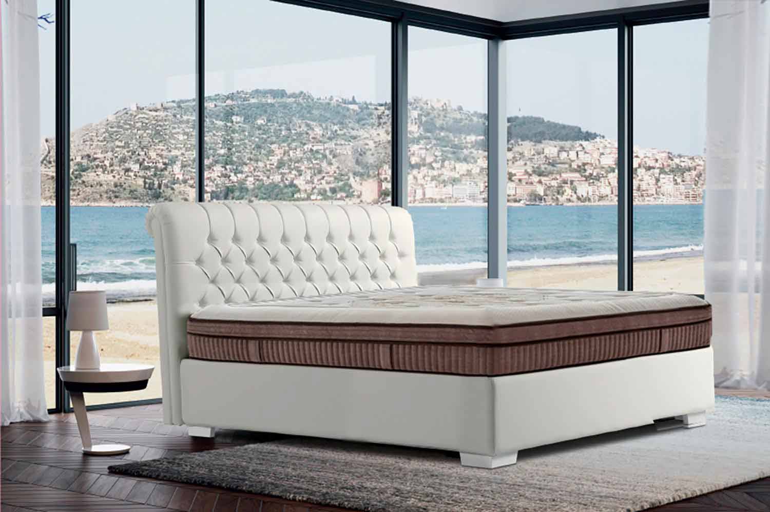 Dubbel madrass i sju zoner 25 cm högt med avtagbart lock och vadderat täckmaterial, handgjord i Italien.