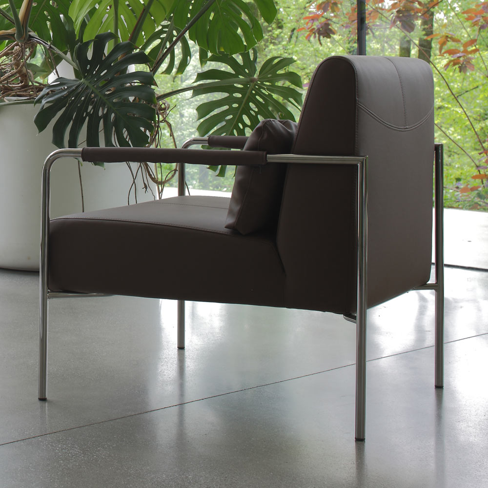 Tillverkad i Italien fåtölj i metall och ekologiskt läder