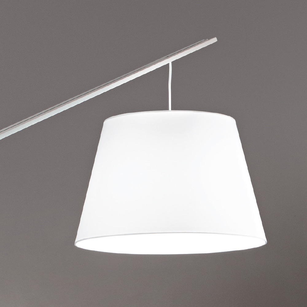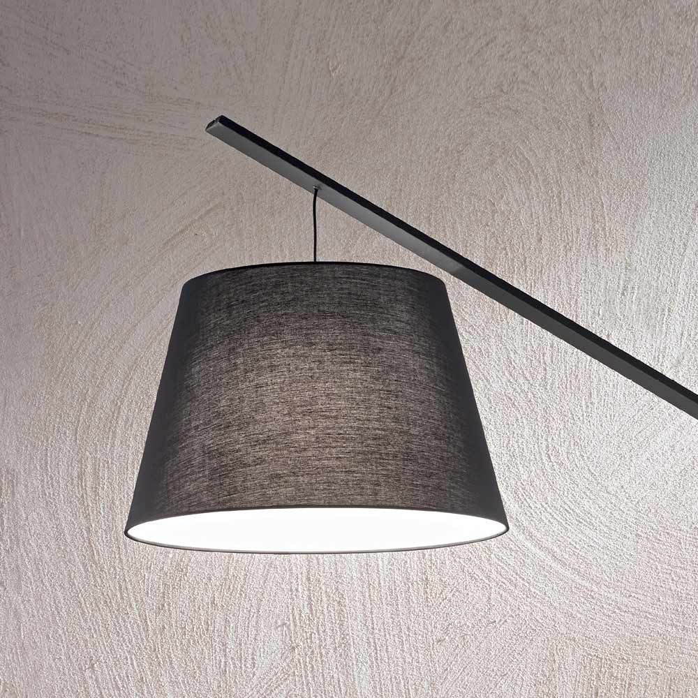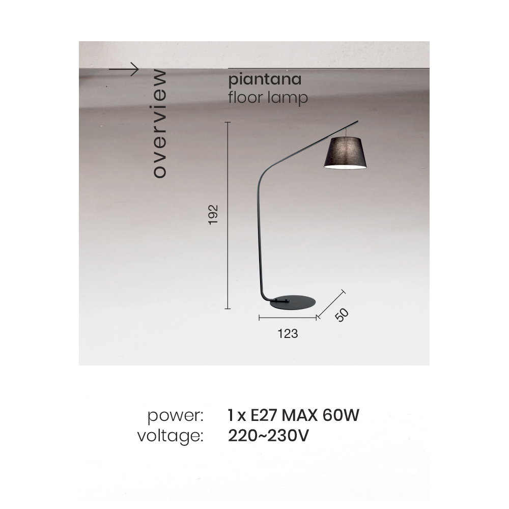 Modern golvlampa i metall med tygklädd pvc lampskärm.