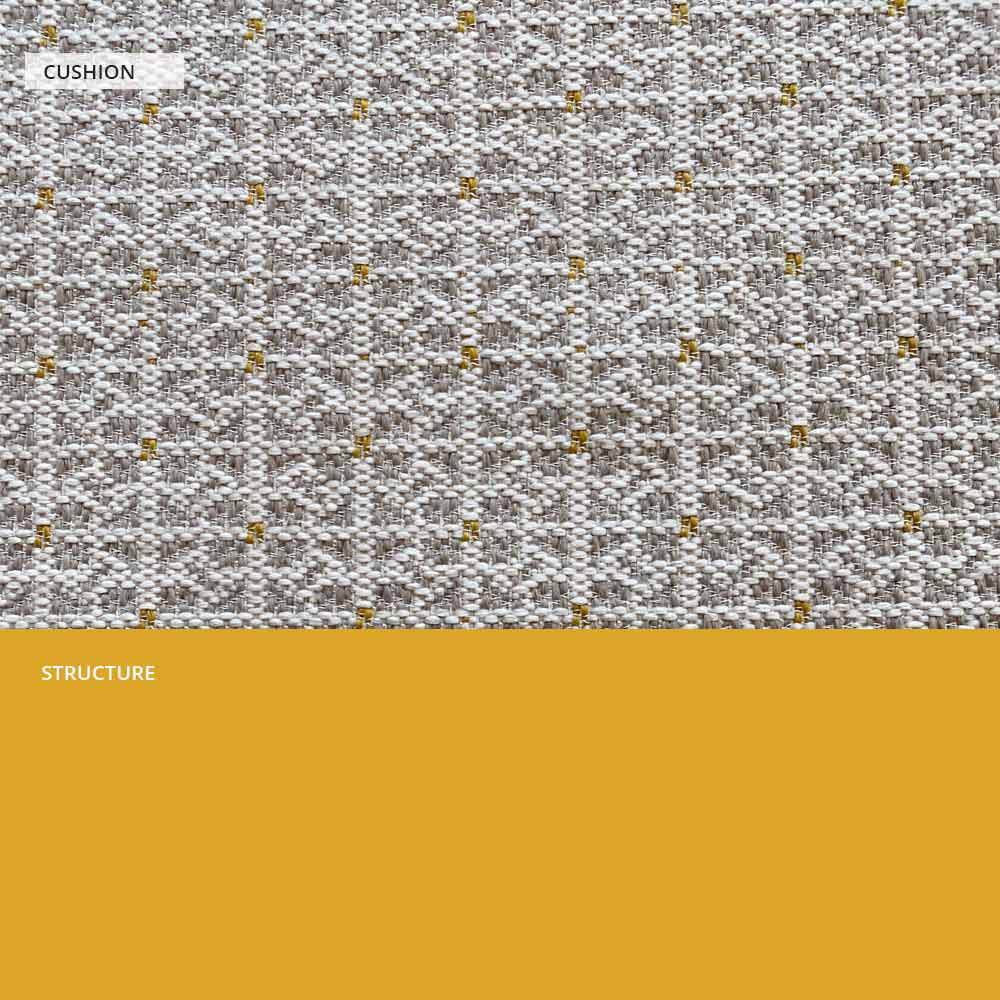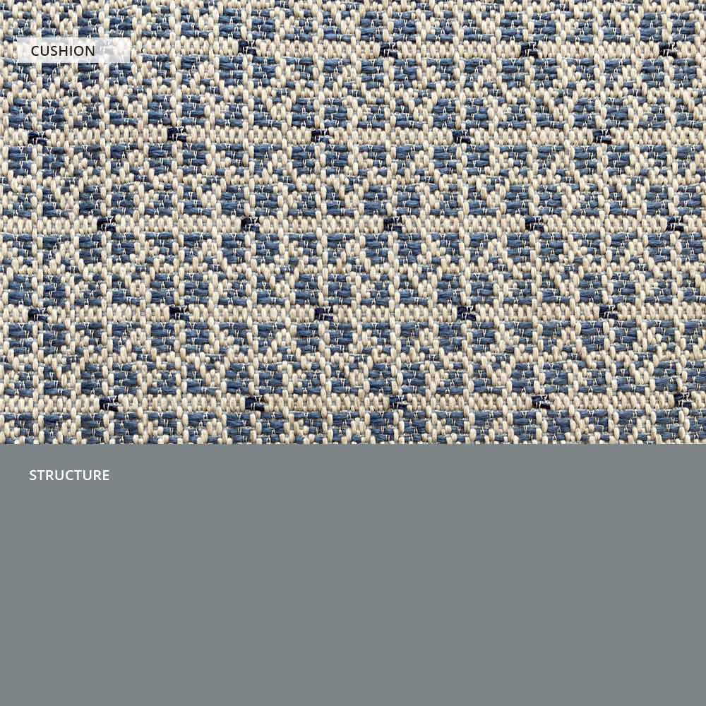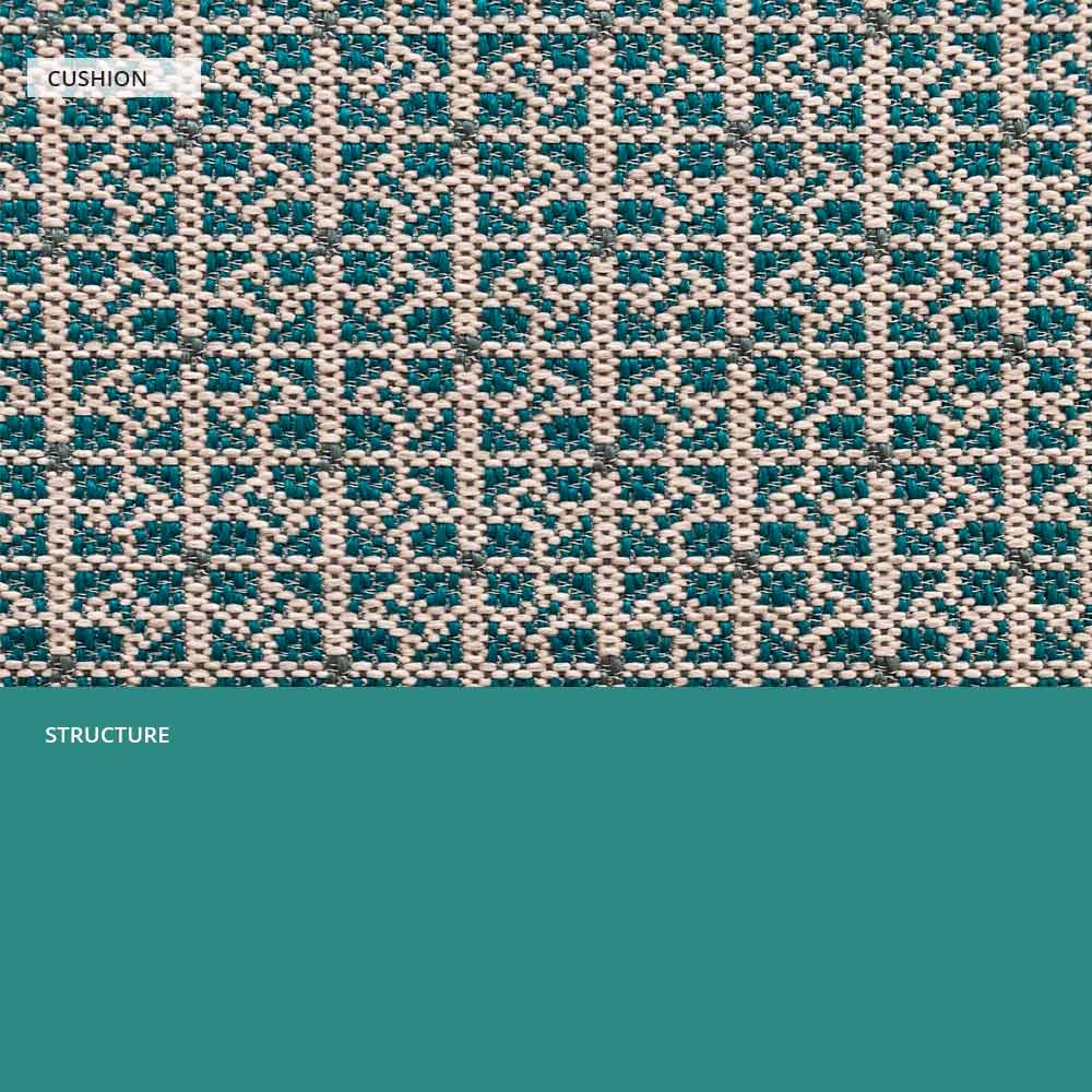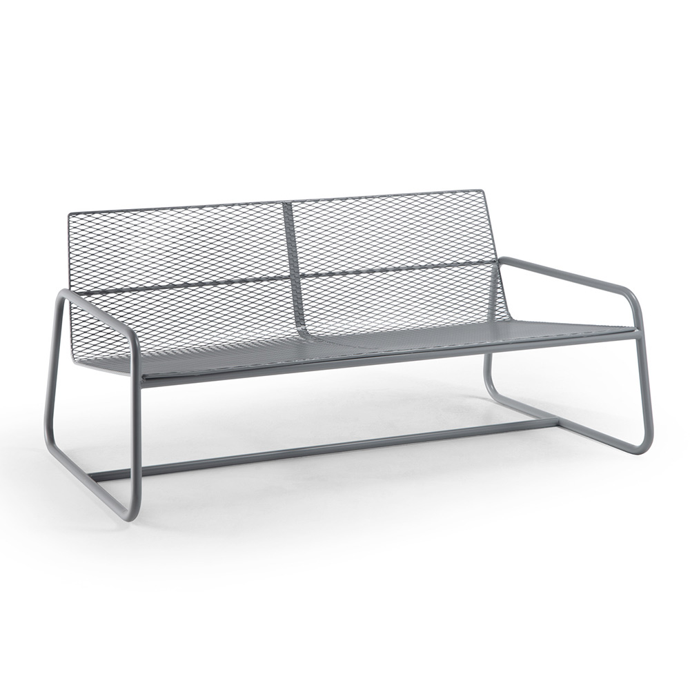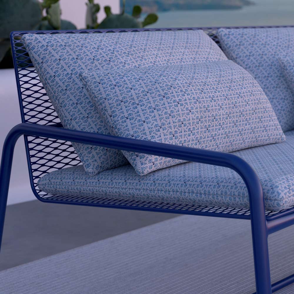 Utomhussoffa i metall med koordinerade tygkuddar finns i olika ytor, lyxartiklar tillverkade i Italien.