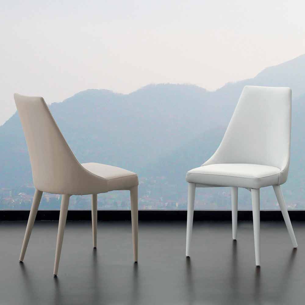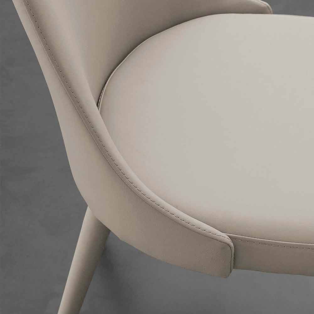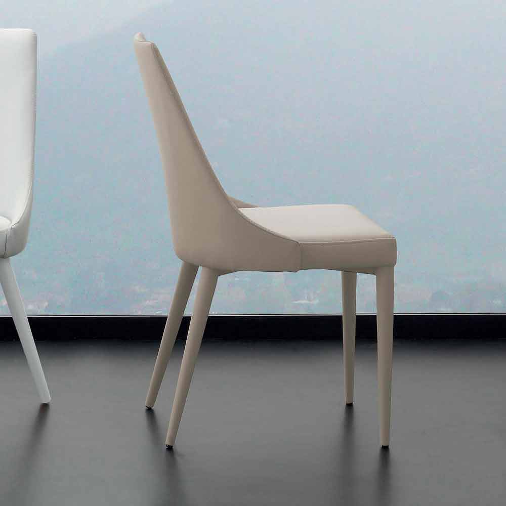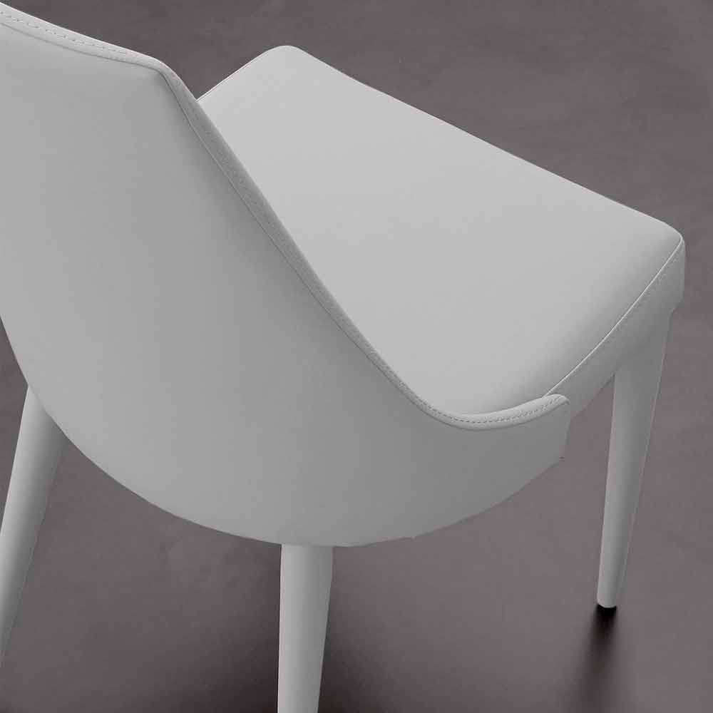 Varje stol består av en metallkonstruktion, helt täckt i läder, finns i två olika färger: Vit eller i sanden version.