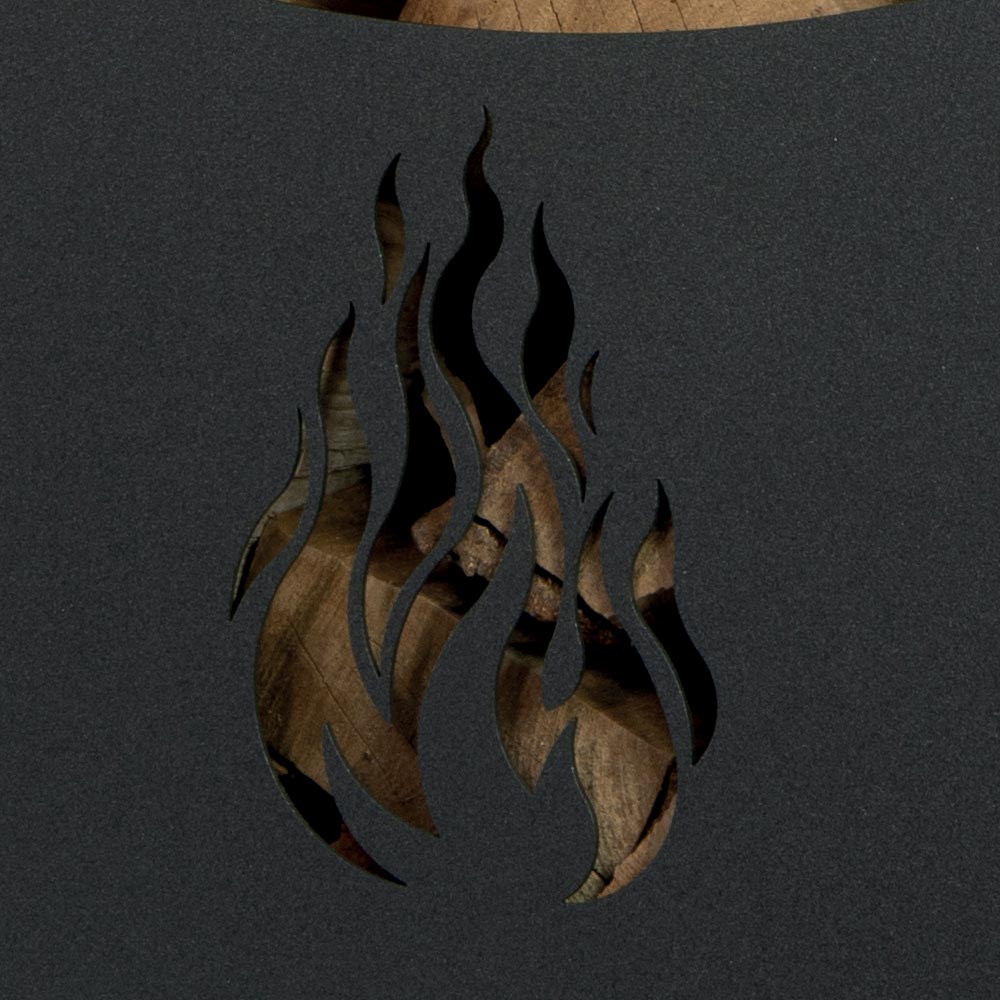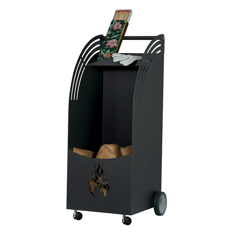 Vagnen har robusta hjul som ger enkel rörlighet, så att du enkelt och utan ansträngning kan flytta trä från ett område till ett annat. Flamskärningen på frontpanelen berikar inte bara vagnen estetiskt utan främjar också ventilationen, vilket är nödvändigt för att hålla träet torrt och redo att användas.