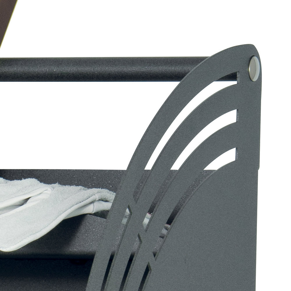 Denna vedvagn är ett extremt praktiskt och stilistiskt tilltalande tillbehör för att hantera ved i din eldstad. Den smarta designen kombinerar rena, moderna linjer med exceptionell funktionalitet, vilket gör den till ett perfekt komplement till alla hemmiljöer. Den vertikala strukturen optimerar utrymmet, vilket gör att en bra mängd trä kan rymmas i ett litet fotavtryck.