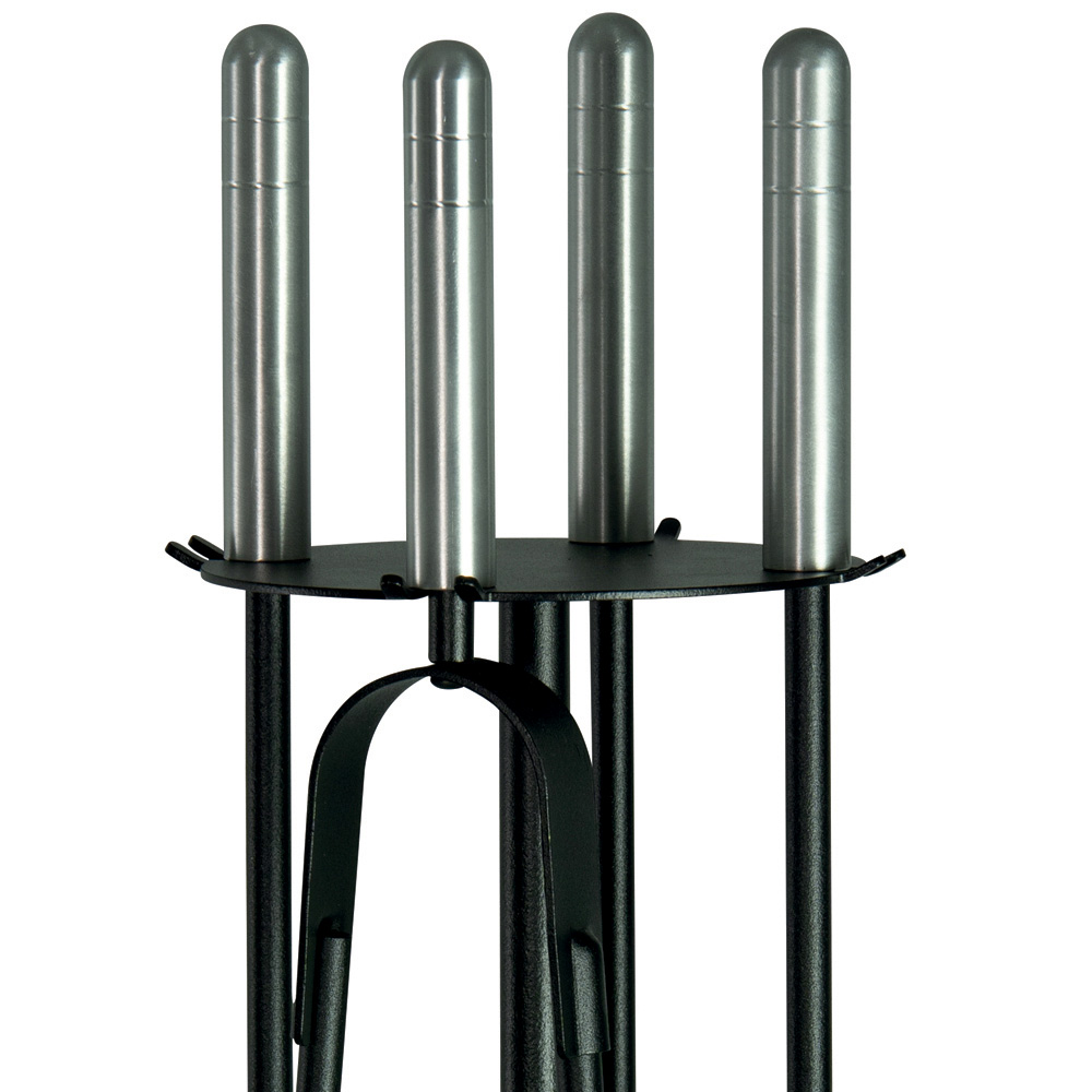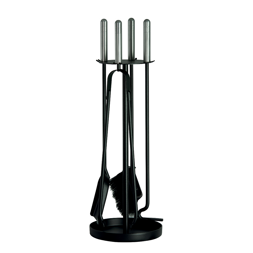 Det vertikala stödet tar inte bara upp lite utrymme, utan organiserar tillbehören effektivt och håller dem snygga och lättillgängliga. Den cirkulära basen samlar upp alla rester eller aska som kan falla när du använder verktygen och håller området runt eldstaden rent.