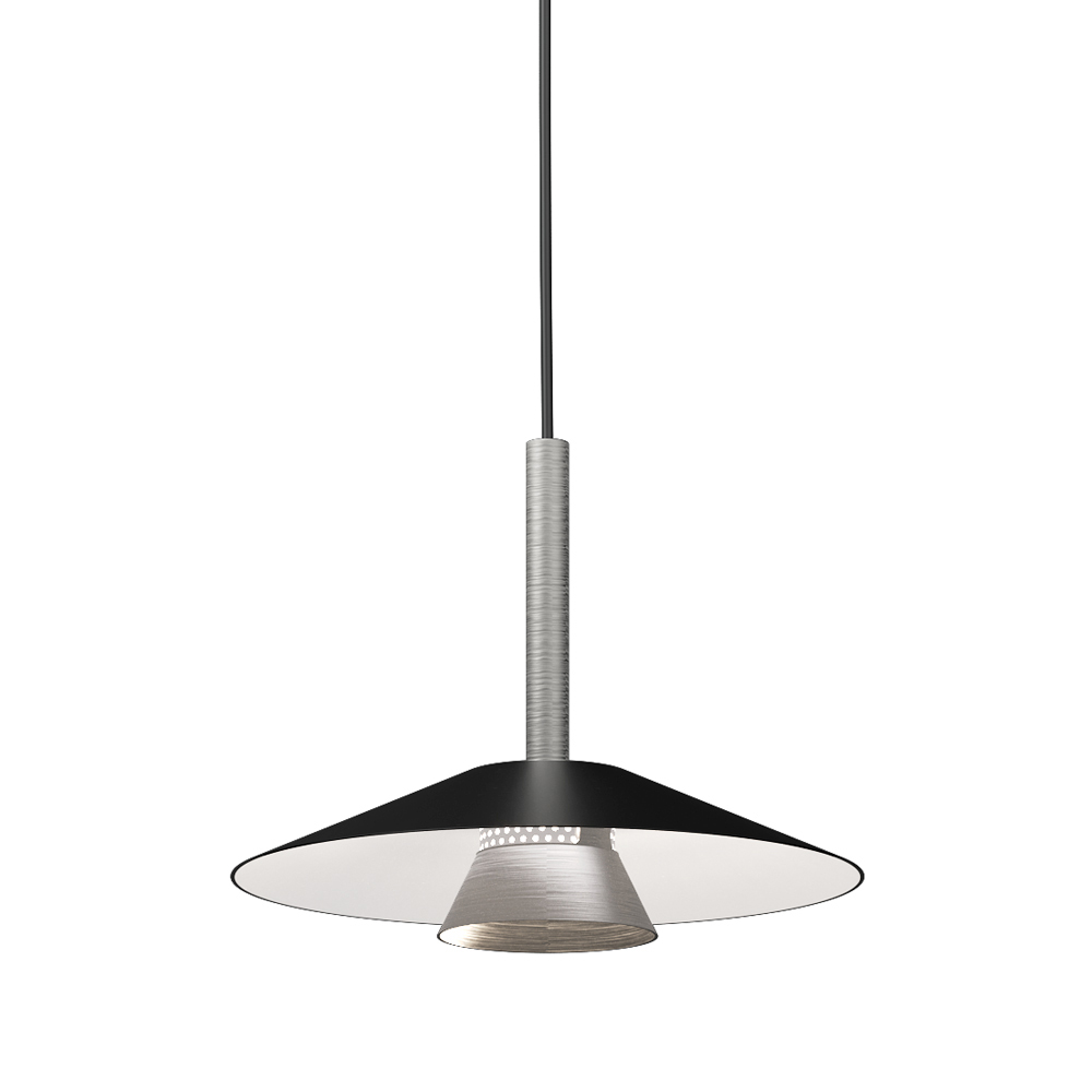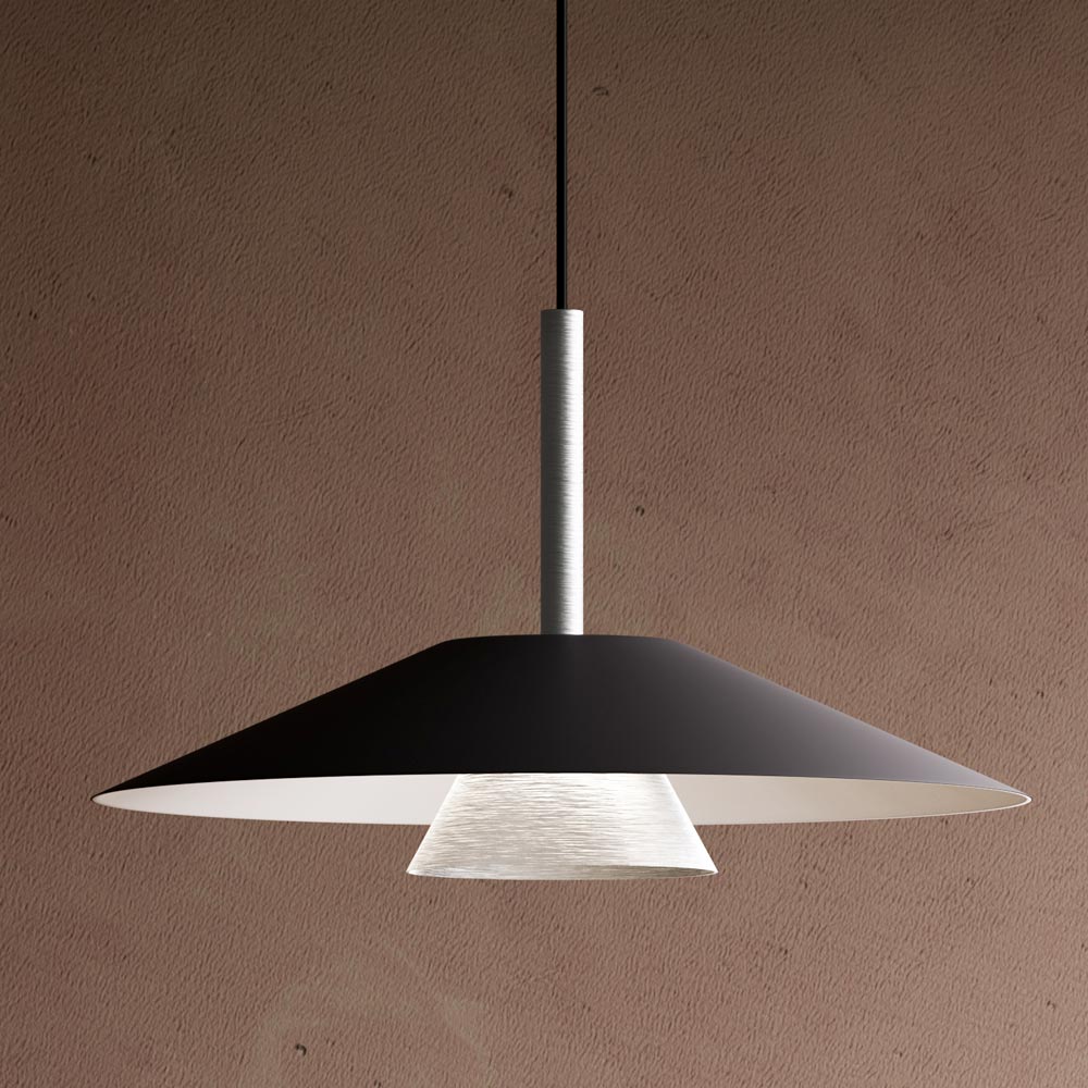 Denna lampa är en perfekt blandning av modern design och industriell elegans , designad för dig som älskar raffinerade detaljer och en djärv estetik. Den geometriska strukturen, med en konisk diffusor och stor reflekterande skiva, skapar ett fascinerande spel av volymer och kontraster , vilket säkerställer ett riktat och omslutande ljus.