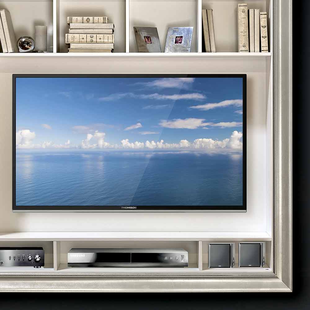 Inuti ramen finns ett tv-fack som är placerat i mitten och flankeras av eleganta hyllor som erbjuder plats för böcker och dekorativa föremål för att personifiera och berika utrymmet. Nedanför, diskreta fack rymmer stilfullt multimediaenheter, håller miljön snygg och utan synliga sladdar.