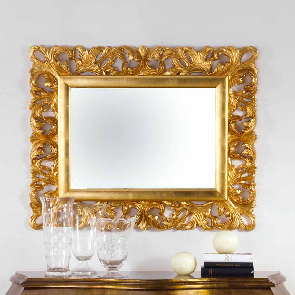 Spegeln Gudin kännetecknas av en hantverks genomföras med användning av material av hög kvalitet och med användning av erfarenhet av skickliga italienska hantverkare. Ramen är tillverkad av trä dekorerad med sniderier. bladguld finish. Spegelglas, 4mm tjock. Made in Italy. Från hang både horisontellt och vertikalt.