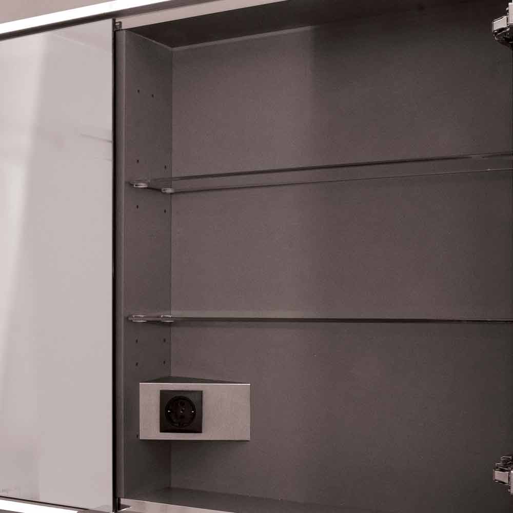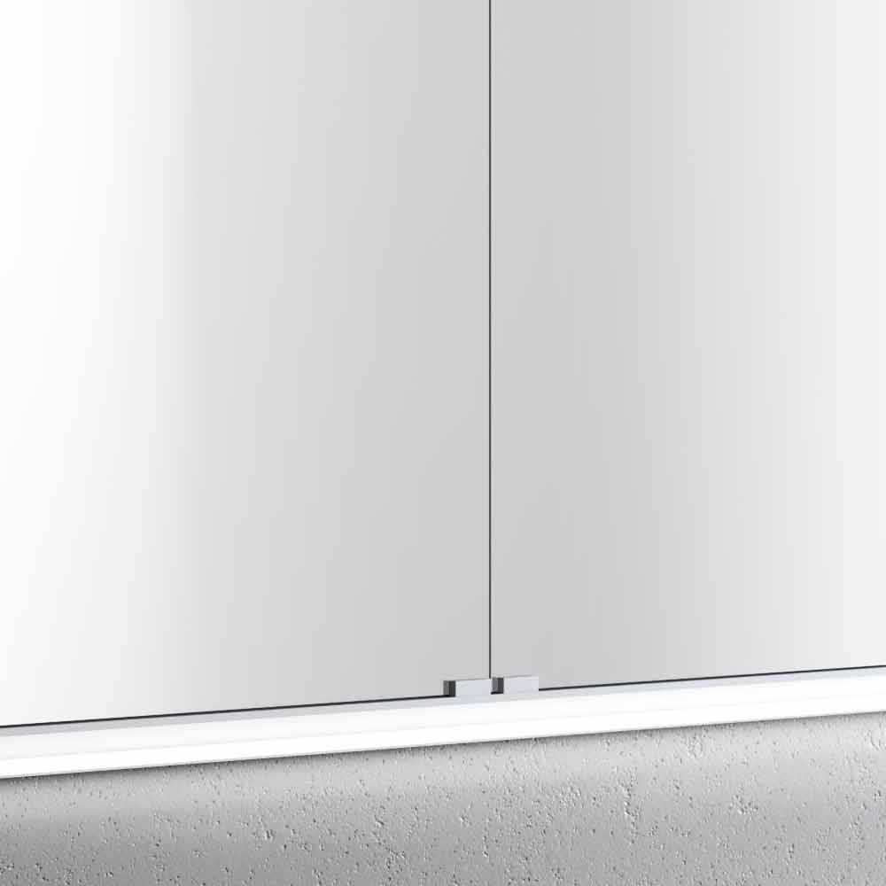 Skåp med 2 spegel dörrar med rena linjer där belysningen blir ett designelement. Struktur i FENIX, polymert material med nano teknisk behandling, vattenavvisande, anti-fingeravtryck och mjuk vid beröring. Levereras med uttag och strömbrytare.