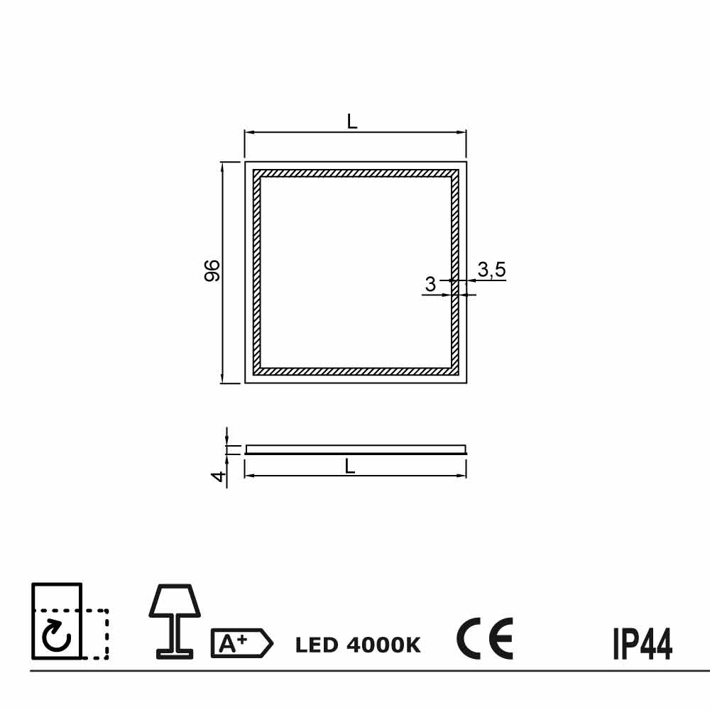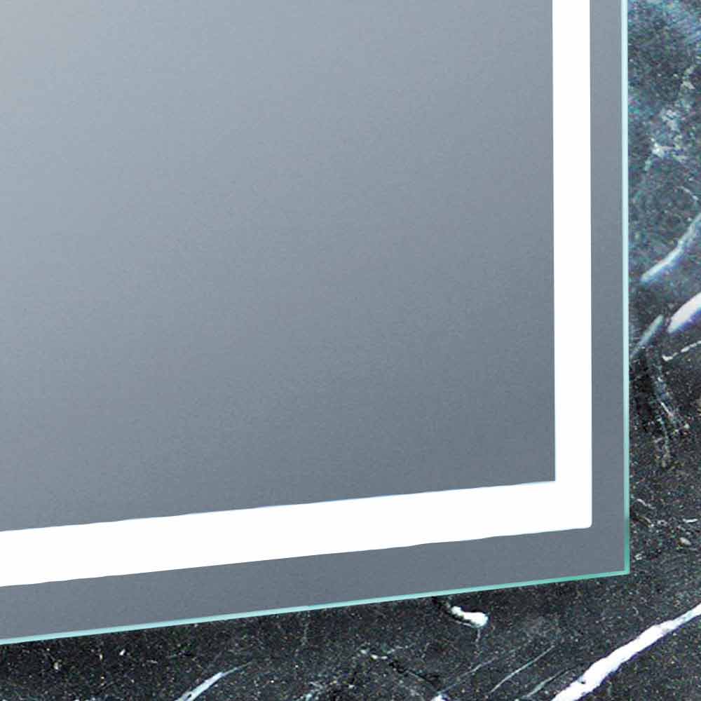 Spegel med integrerad LED-belysning i spegeln med kanter i rostfritt stål. Paco finns även i storlek 72x96 cm.