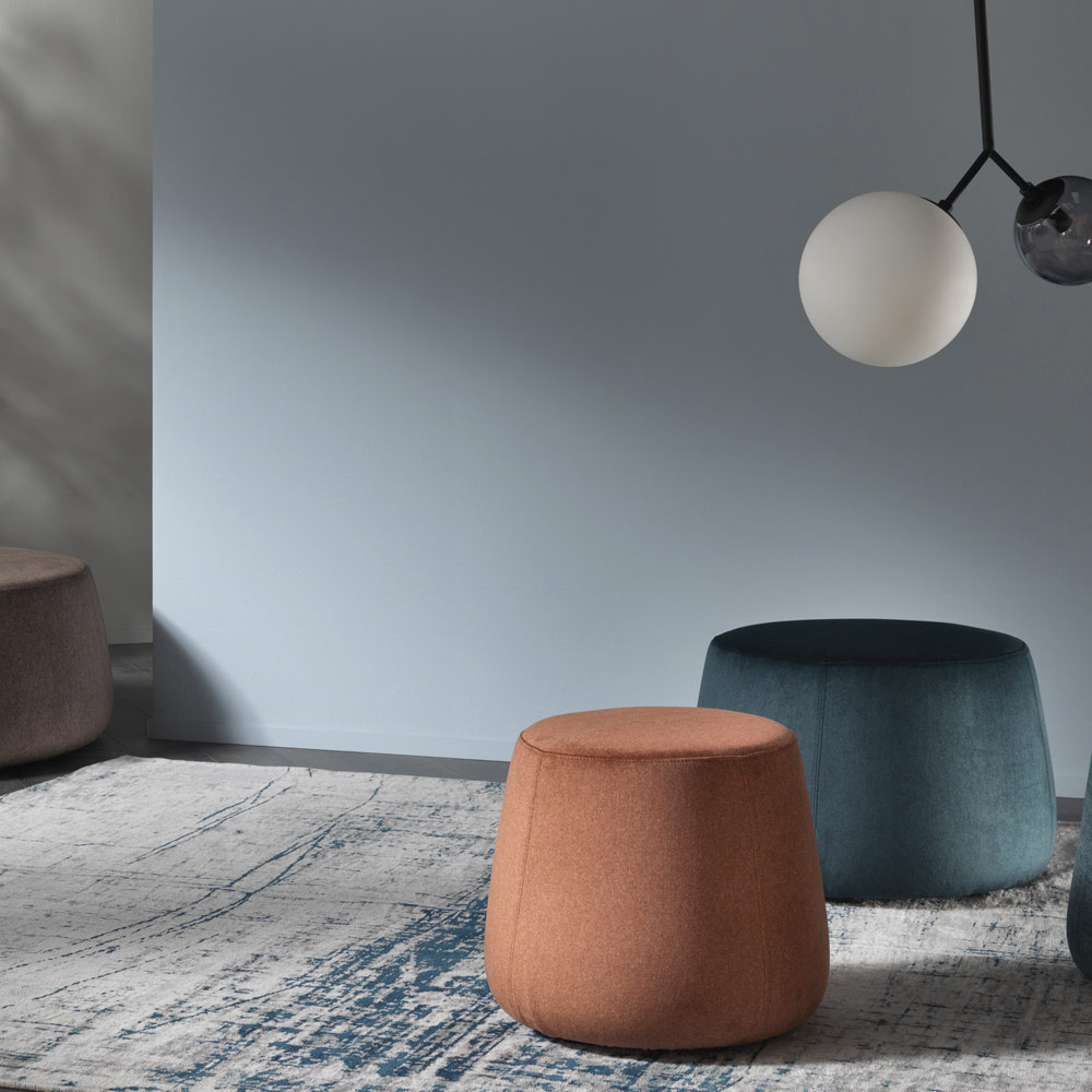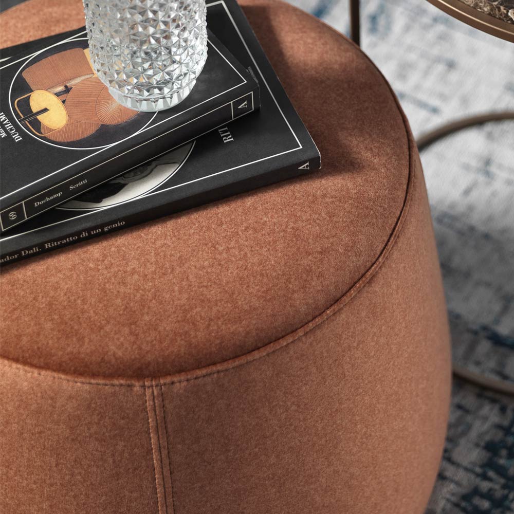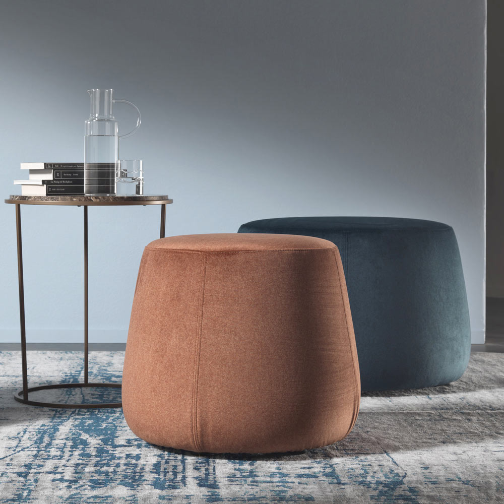 Den moderna och runda designpuffen i tre olika bredder är helt täckt av mjuk avtagbar sammet som finns i 6 ytor.