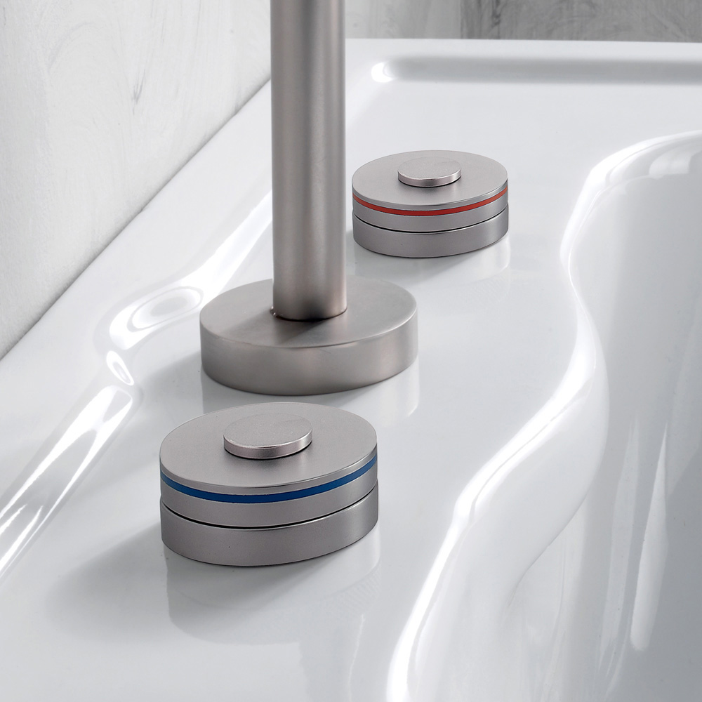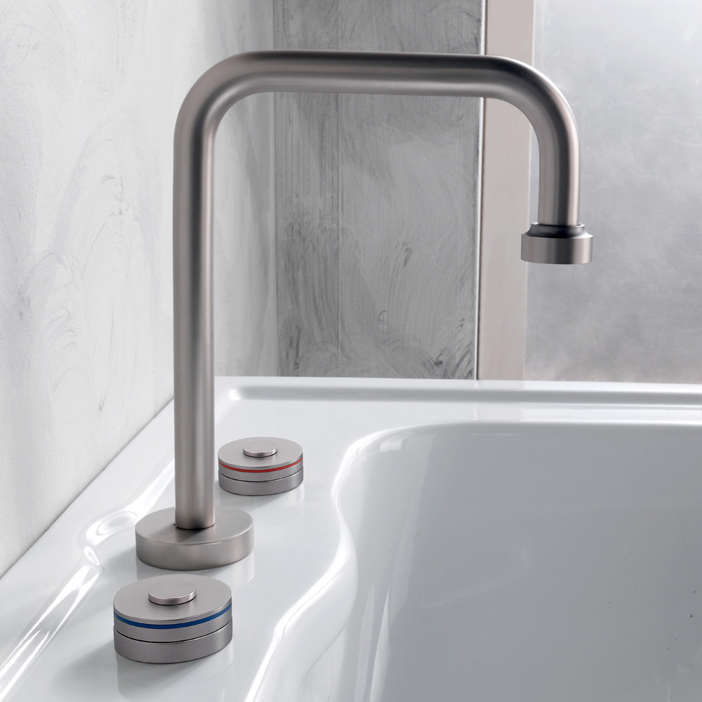 Battery 3-håls tvättställ med avlopp helt handgjord av kunniga hantverkare inom området i tung mässing, gjuten i formar som respekterar det förflutnas hantverkssystem och skyddad med ett tjockt lager av matt nickel.