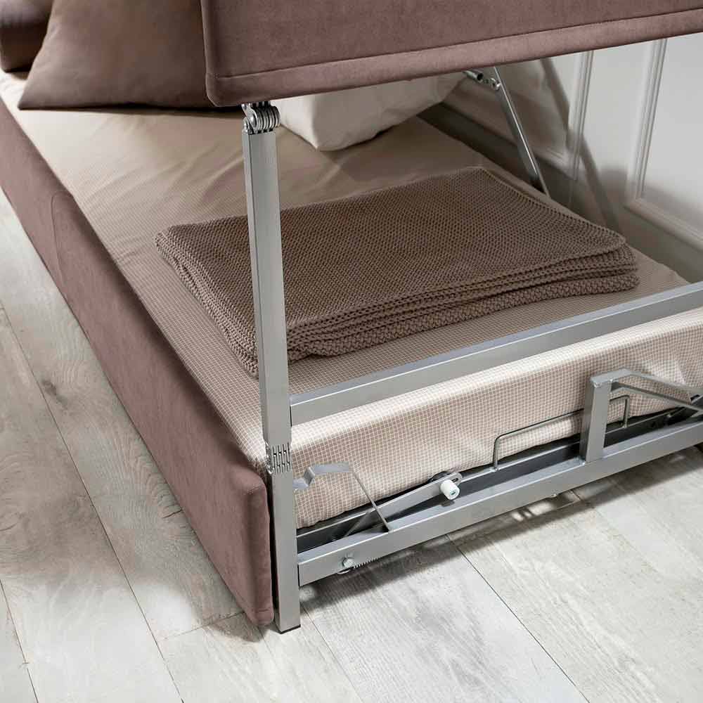 Bäddsoffa för våningssäng täckt i brunt tyg med modern design Made in Italy.