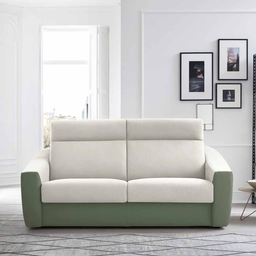 Modern dubbel bäddsoffa i tvåfärgat tyg tillverkat i Italien.