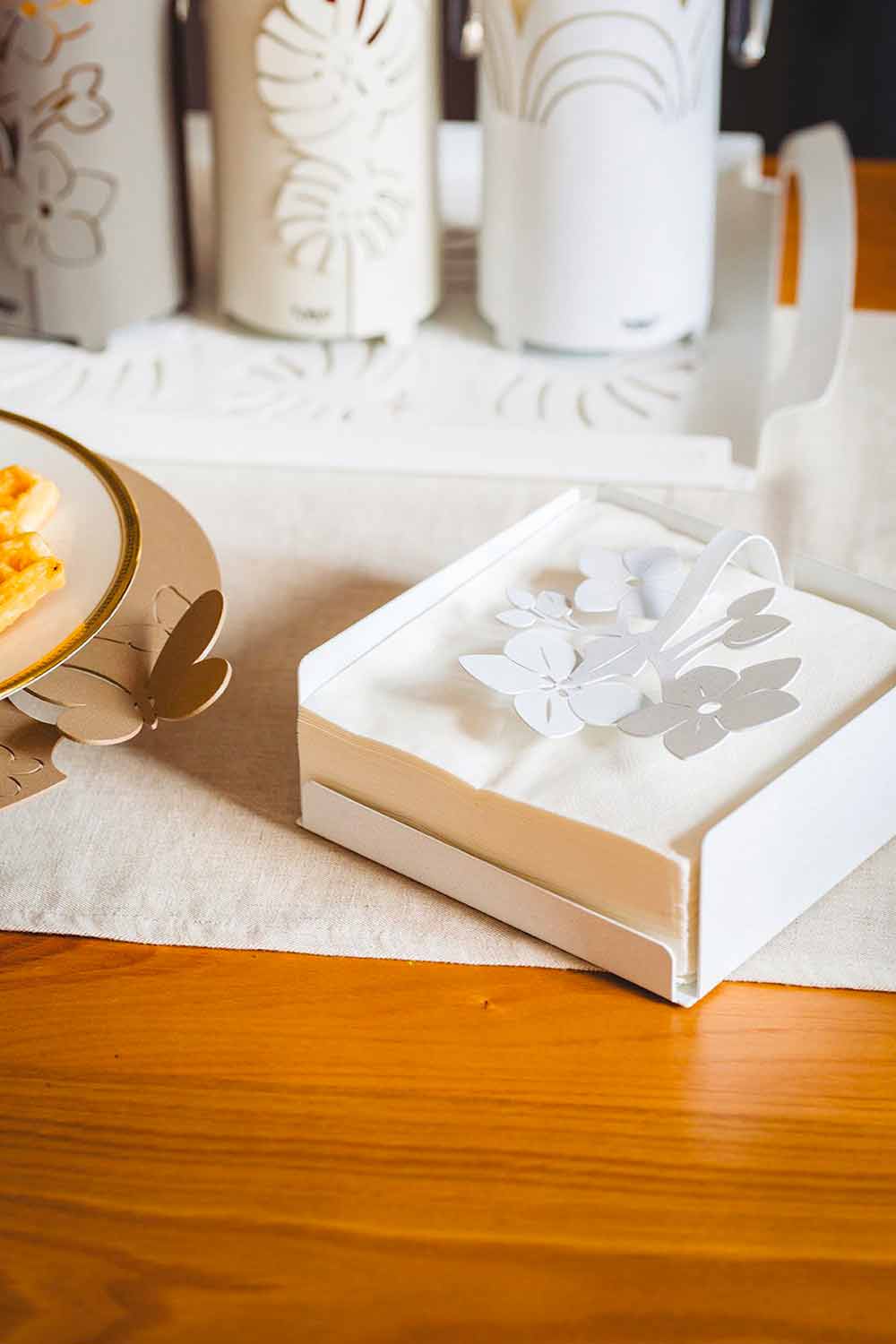 Servetthållare för modern design, handgjord i Italien i vitt järn, marmor, ljusblått eller lera.