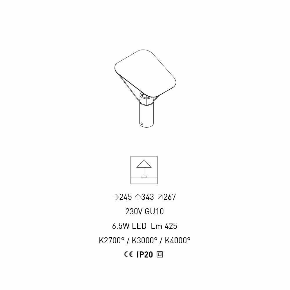 Glödlampa / uttag: 230V GU10 6,5W LED Lm 425 K2700 ° / K3000 ° / K4000 °