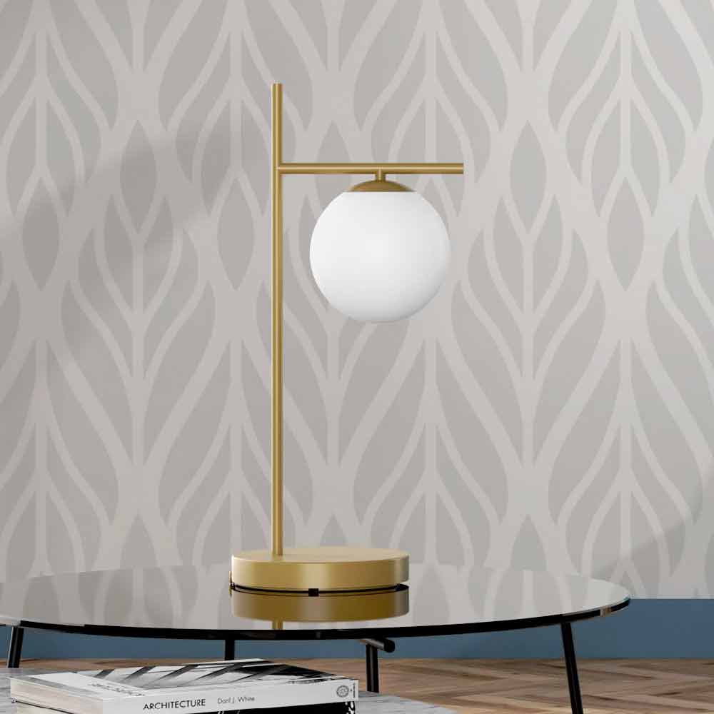 Denna bordslampa är helt tillverkad i Italien och består av en metallkonstruktion i mässing som berikas och kompletteras av en elegant vit opalglasfär inuti vilken lampan kommer att placeras. Användningen av enkla och väsentliga linjer kombinerat med sfäriska former gör det möjligt att skapa en design som kännetecknas av harmoni och sinuositet , element som kan ge elegans och en raffinerad touch till miljön.