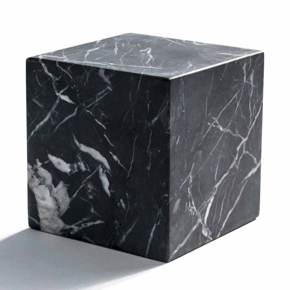 Liten kubpappersvikt gjord av svart Marquinia-marmor . Det är en unik bit eftersom varje block av marmor skiljer sig från de andra för vener och nyanser.