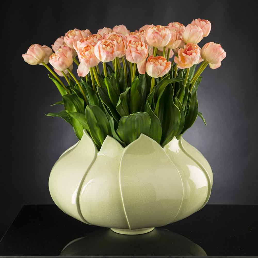 färgad keramik handgjord i Italien. En särskilt elegant design som påminner om en tulpan och erbjuder ett
