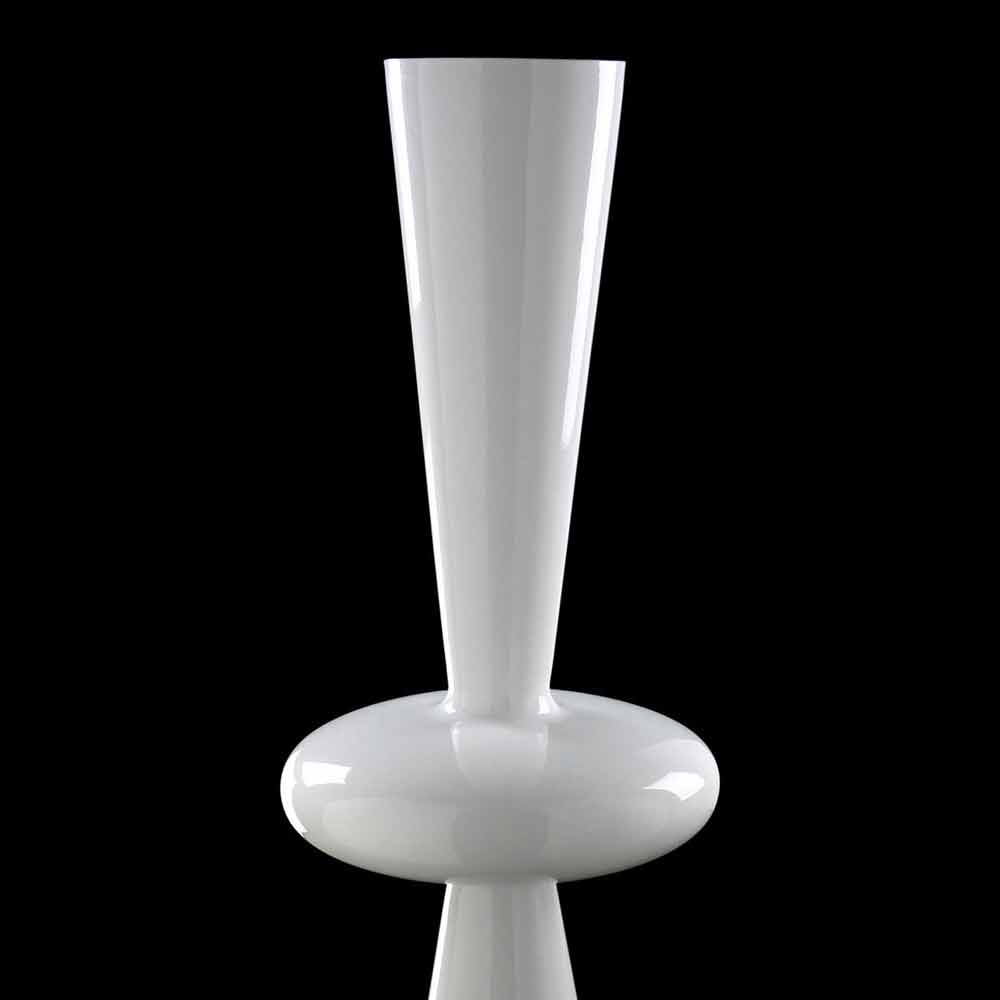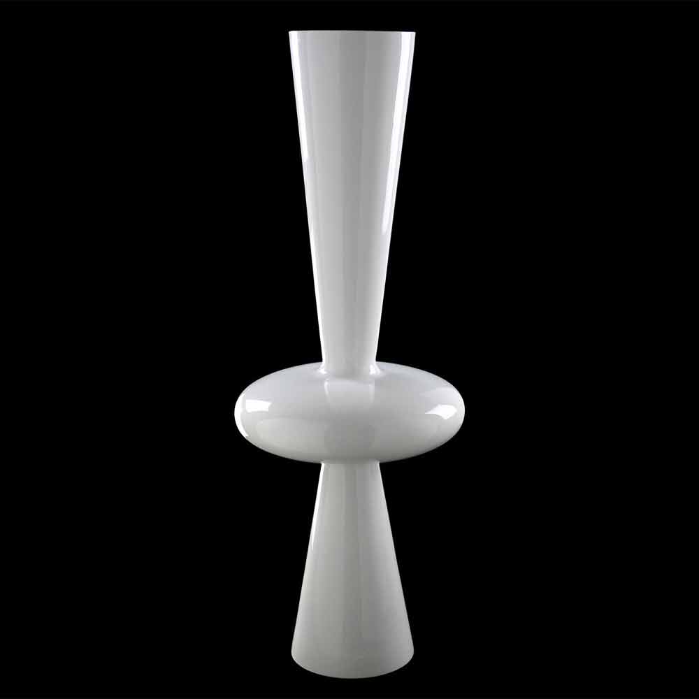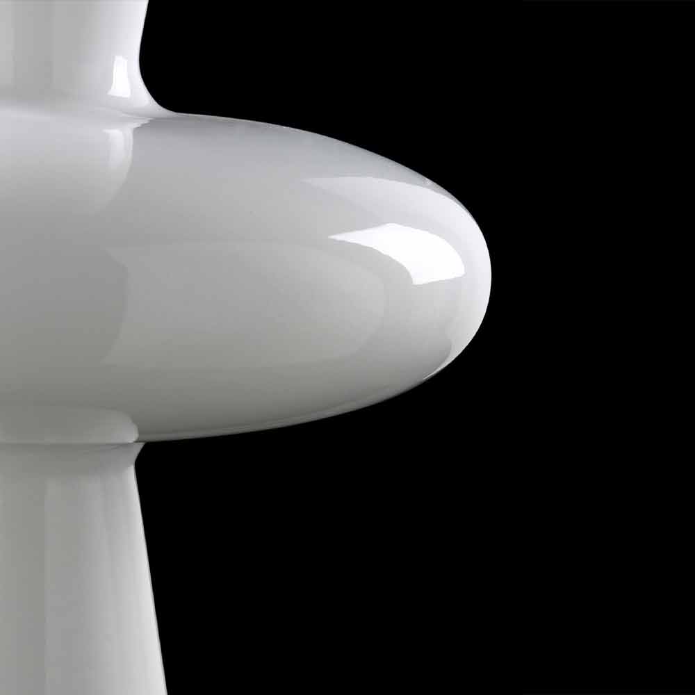 Hög vas för interiörer gjord av vit keramik handgjord i Italien. Original och nästan futuristiska former markerar estetiken i detta moderna och avantgardistiska komplement som uppmärksammar sig själv tack vare en stark kreativ personlighet och ett unikt designideal för dem som älskar att anpassa sina utrymmen på ett exklusivt och raffinerat sätt. Användningen av keramik och hantverk understryker dess värde och värde genom att erbjuda ett dekorativt kvalitetselement . En idealisk stil för de mest varierade miljöerna, från heminredning till hotell, restauranger, kontraktsområden, spa men också som en miljö för evenemang och bröllop.