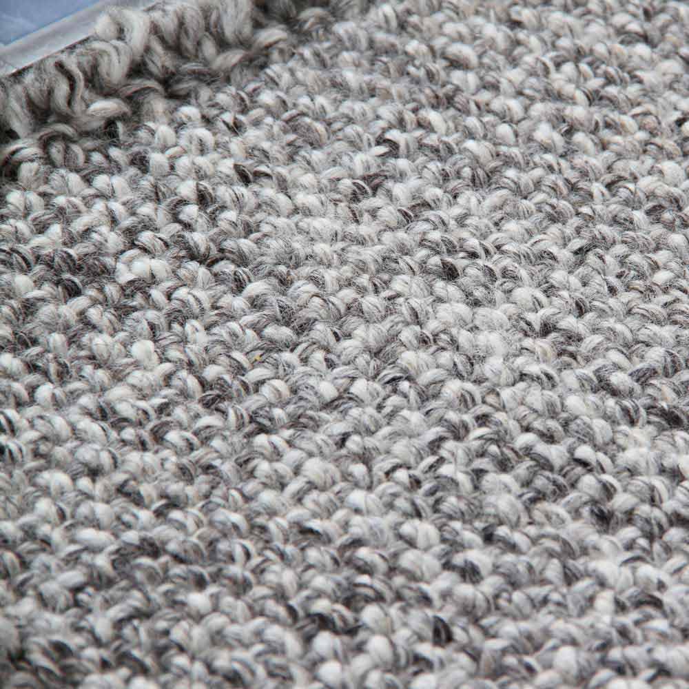 Stor matta i modern design i grädde eller svart ull med kantkant.