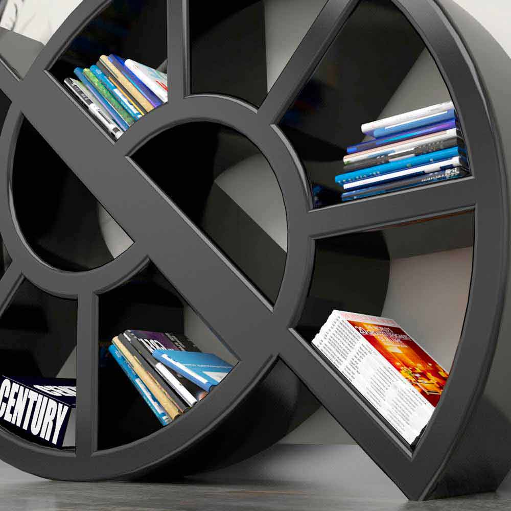 Denna designbokhylla drar full nytta av funktionalitet och skönhet, med en blank lackerad finish av alla typer av färger, kommer den att vara den dominerande och obestridda möbeln.
