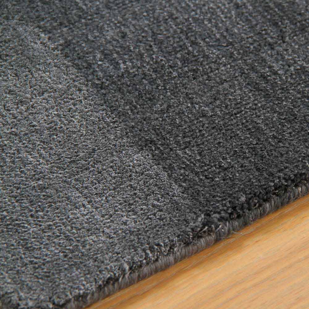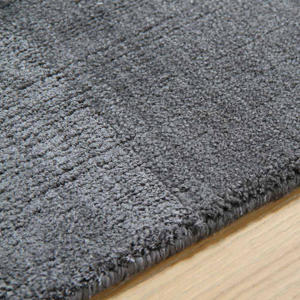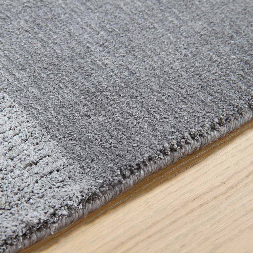 Detta är en matta realiserad i blandad ädelull och siden där föreningen mellan de två trådarna skapar en elegant rörelseseffekt .