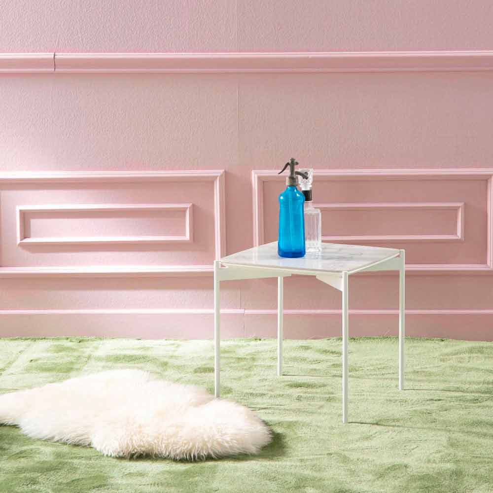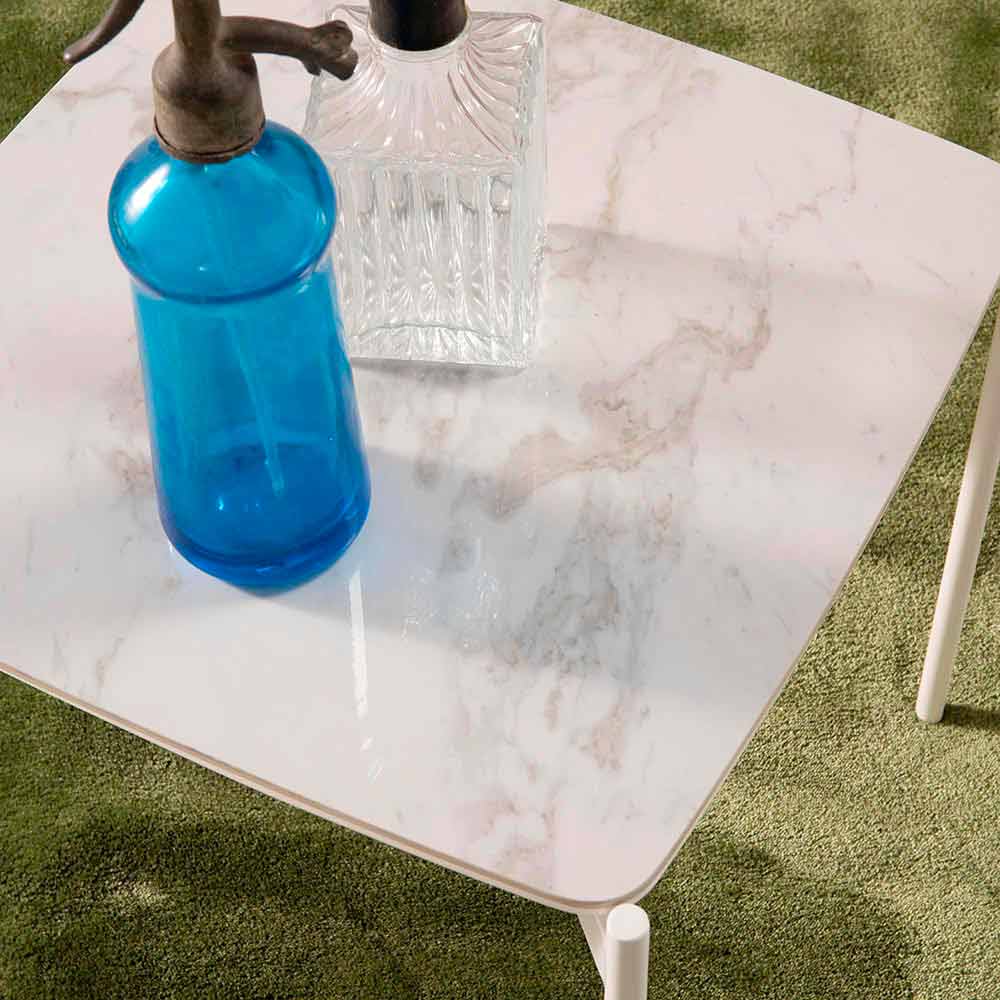 Istrice är ett fyrkantigt soffbord gjord med en MDF-topp med en keramisk platta på toppen och en metallkonstruktion.